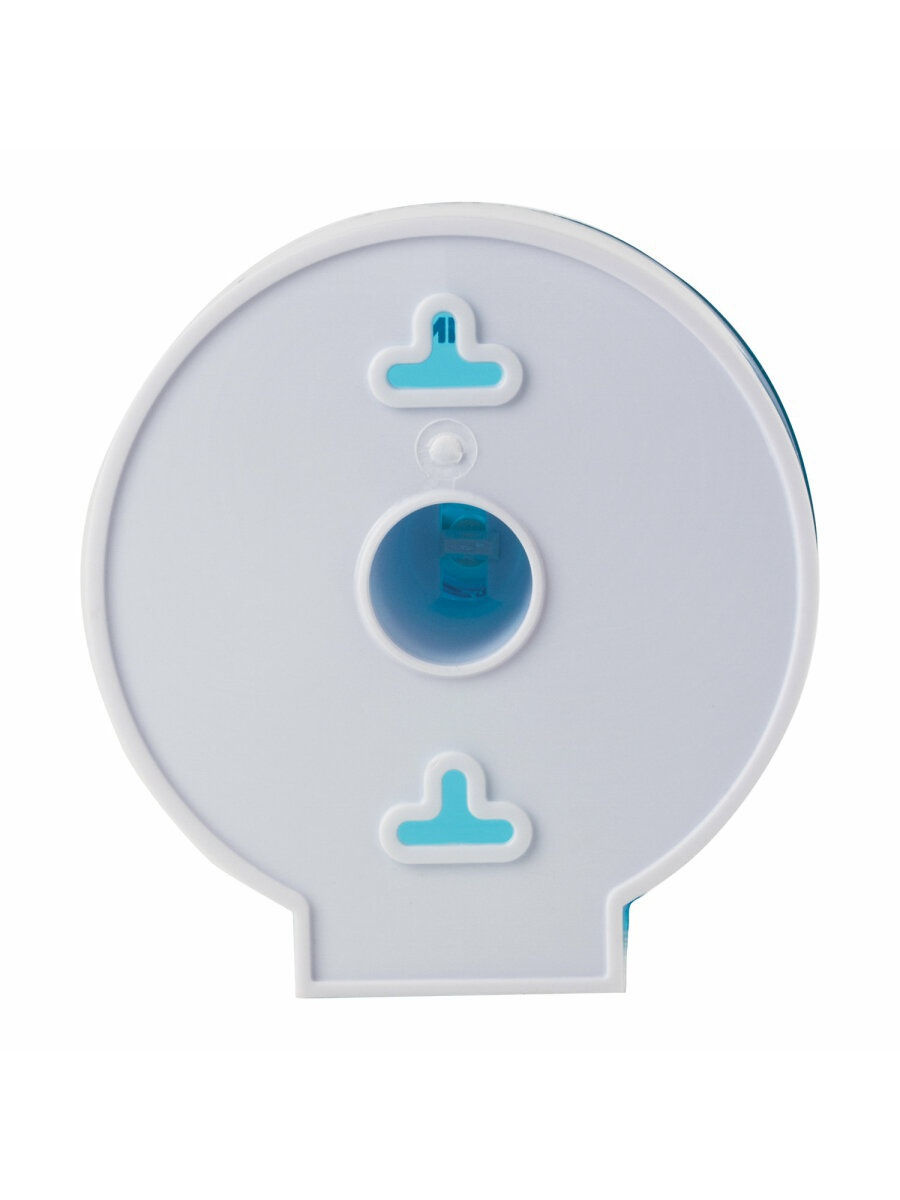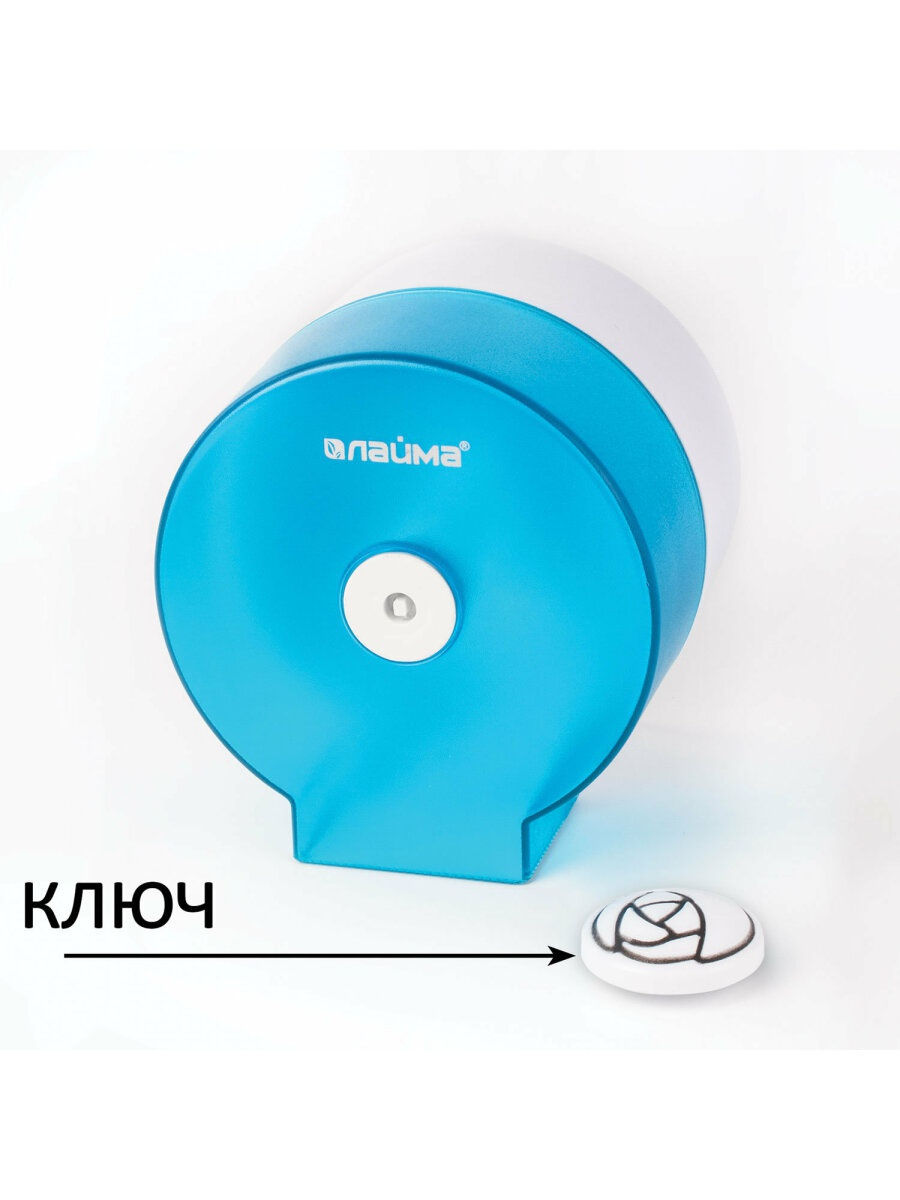 Диспенсер для бытовой туалетной бумаги в рулонах с втулкой. Идеален для туалетных комнат с малой проходимостью, для домашнего использования. Обеспечивает высокий уровень комфорта для посетителей. Оснащен замком и съемным декоративным ключом. Материал: пластик. Цвет корпуса: белый/голубой. Тип крепления: саморез. Размещение: настенное. Ширина: 140 мм. Высота: 150 мм. Глубина: 120 мм. Артикул производителя: 605045.