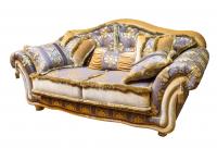 Изделие отличается неоклассическим стилем. Особенность этого стиля заключается в том, что он является золотой серединой среди всех известных. Сохраняя роскошь классики, он подчиняется ритму современного мира и отвечает большинству запросов в плане комфорта. Потому такой интерьер завоевывает все больше поклонников. Сидение дивана и кресла пенополиуретановый матрас, одетый в чехол. Используется древесина хвойных и твердолиственных пород. Ножки комплекта – бук. Художественная выразительность подчеркивается профилем, декоративным шнуром, кистями, бахромой. Наполнитель декоративных подушек – синтетический пух.