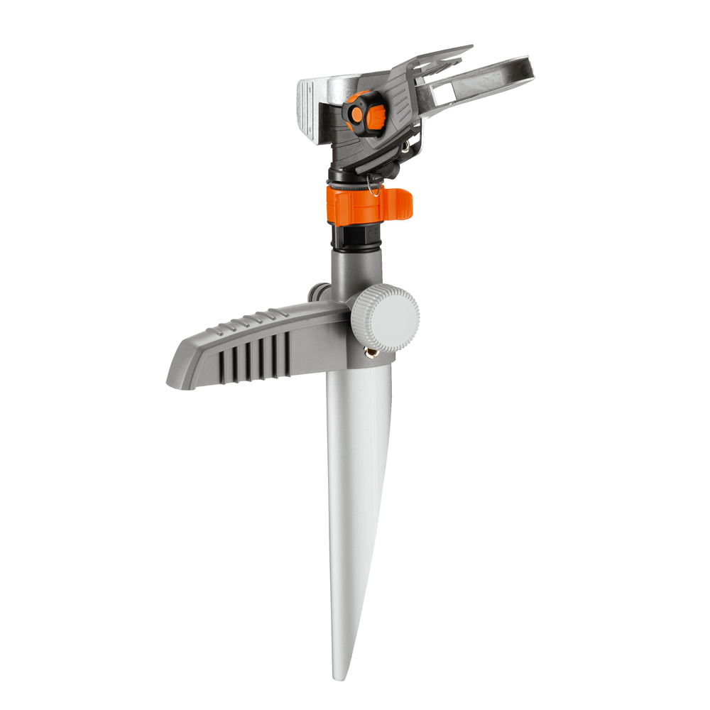 Импульсный дождеватель Gardena Premium 08136-20.000.00 обеспечивает равномерное и качественное орошение растений без образования луж. Благодаря специальному колышку происходит аппарат надежно крепится к поверхности. Можно задать сектор, которому требуется поливка (в диапазоне от 25 до 360°). Возможно подсоединение нескольких дождевателей в последовательную цепочку для орошения большей площади - для этого необходим штуцер. Технические характеристики: Площадь полива: 75-490 м. Диаметр полива: 10-25 м.