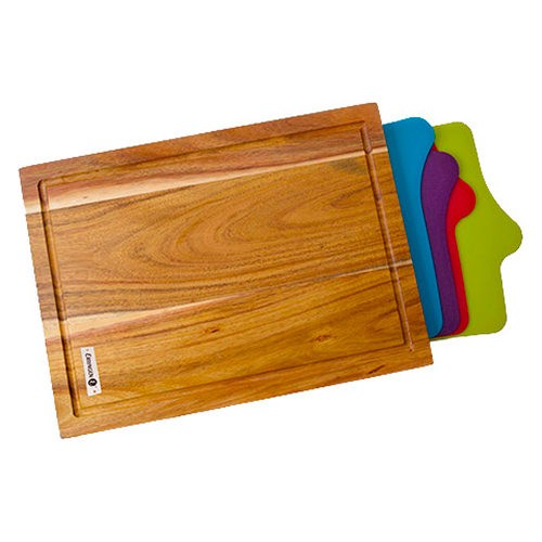 Доска разделочная со сменными поверхностями Erringen. Не рекомендуется мыть в посудомоечной машине. В набор входят: деревянная разделочная доска, сменные разделочные поверхности из пластика 4 шт.