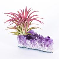 Эффектное сочетание кристалла аметиста и удивительной тилландсии - прекрасный подарок или украшение рабочего стола. Аметист - самая дорогая разновидность кварца. Оттеночная гамма натуральных аметистов имеет широкий диапазон – от бледного фиолетового до насыщенного сине-красного цветов. Атмосферные тилландсии - это растения без корней, которые питаются влагой, содержащейся в воздухе, поэтому все, что потребуется - периодически опрыскивать их.