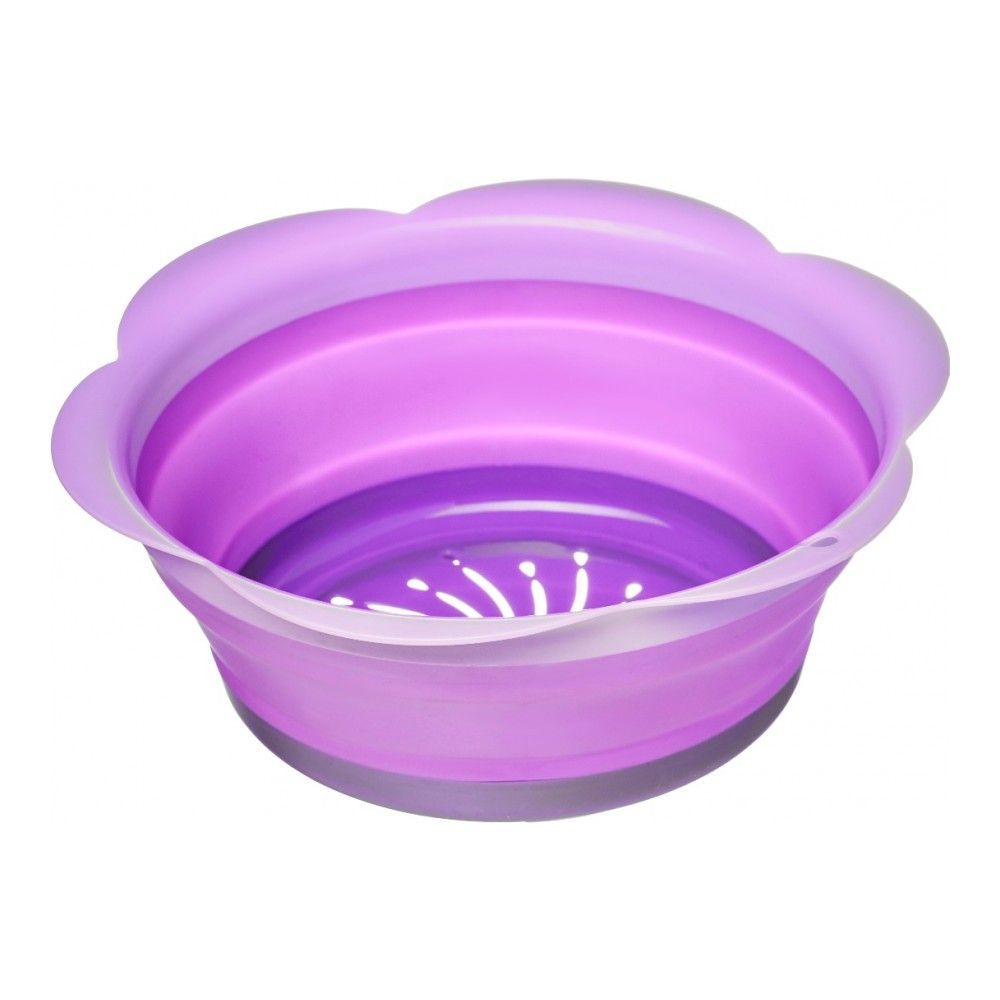 Дуршлаг - один из самых объёмных кухонных аксессуаров. Складной дуршлаг лишён этого недостатка. Основание и бортик дуршлага сделаны из качественного пластика, а сама емкость с отверстиями - из термоустойчивого силикона.