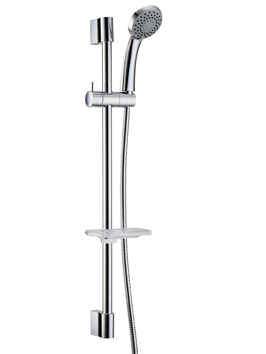 Душевой гарнитур с мыльницей. Превосходно сочетается в интерьере современного стиля благодаря лаконичной конструкции и функциональности. Характеристики: Высота стойки 70 см. Регулируемое по высоте крепление для лейки. Регулируемая по высоте мыльница. 3 положения душевой лейки. В комплекте: Душевая лейка, держатель для лейки, Стойка для душа, регулируемая по высоте мыльница, шланг в металл. оплетке 150 см..