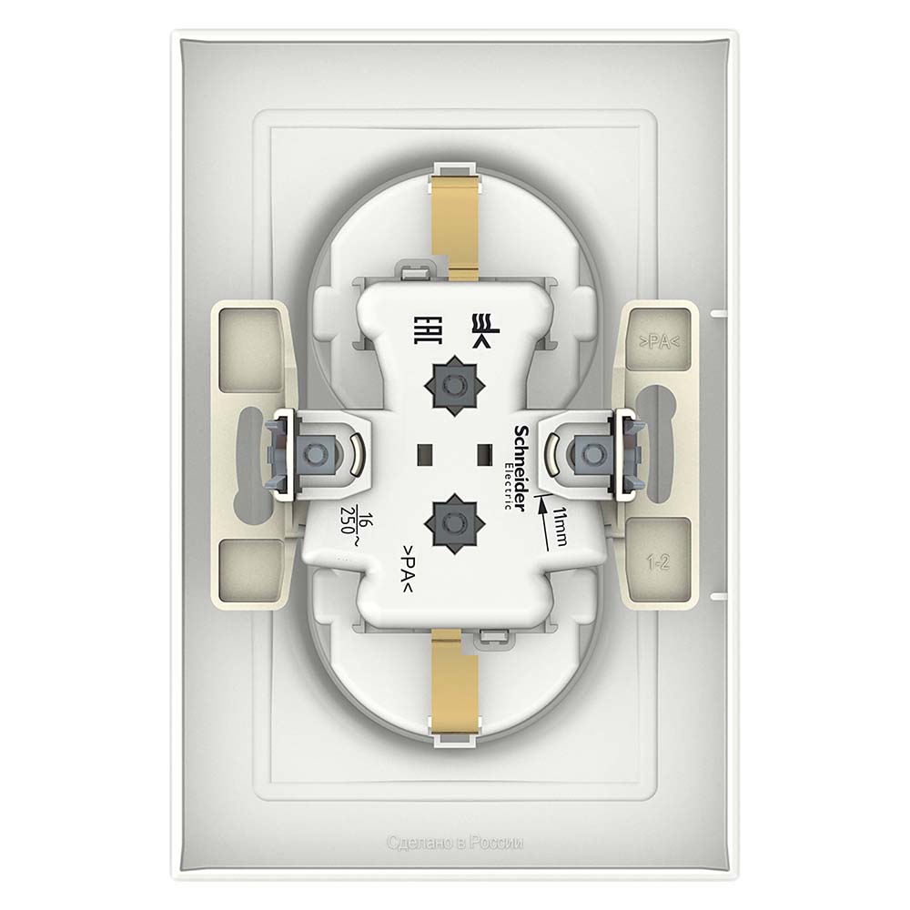 Двойная розетка Schneider Electric Атлас Дизайн с заземлением со шторками с рамкой белая
