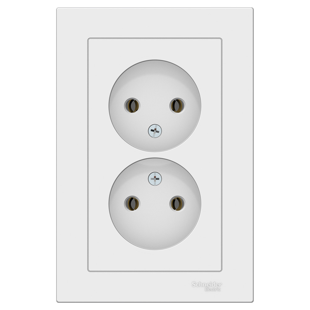 Двойная розетка Schneider Electric Атлас Дизайн без заземления с рамкой белая