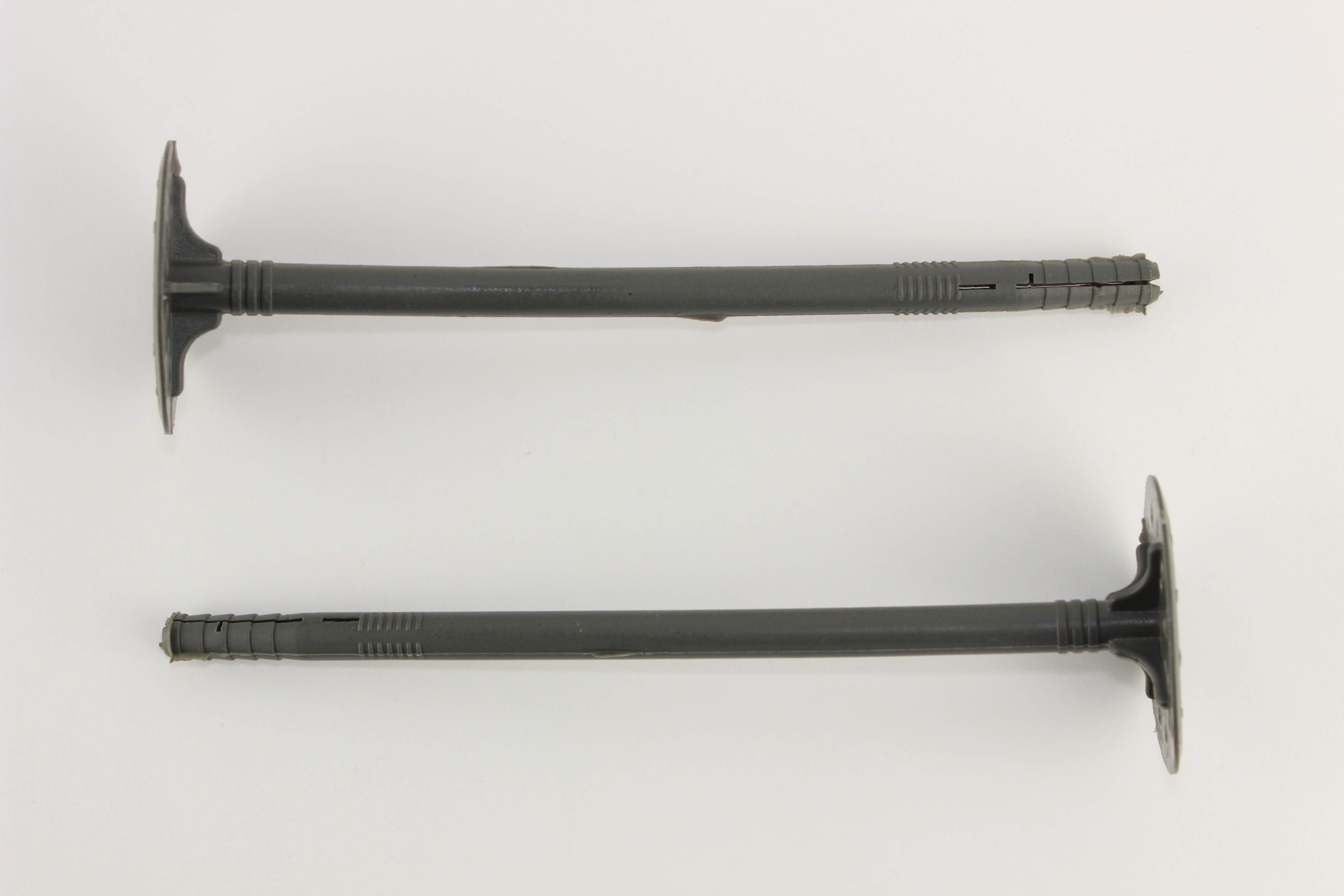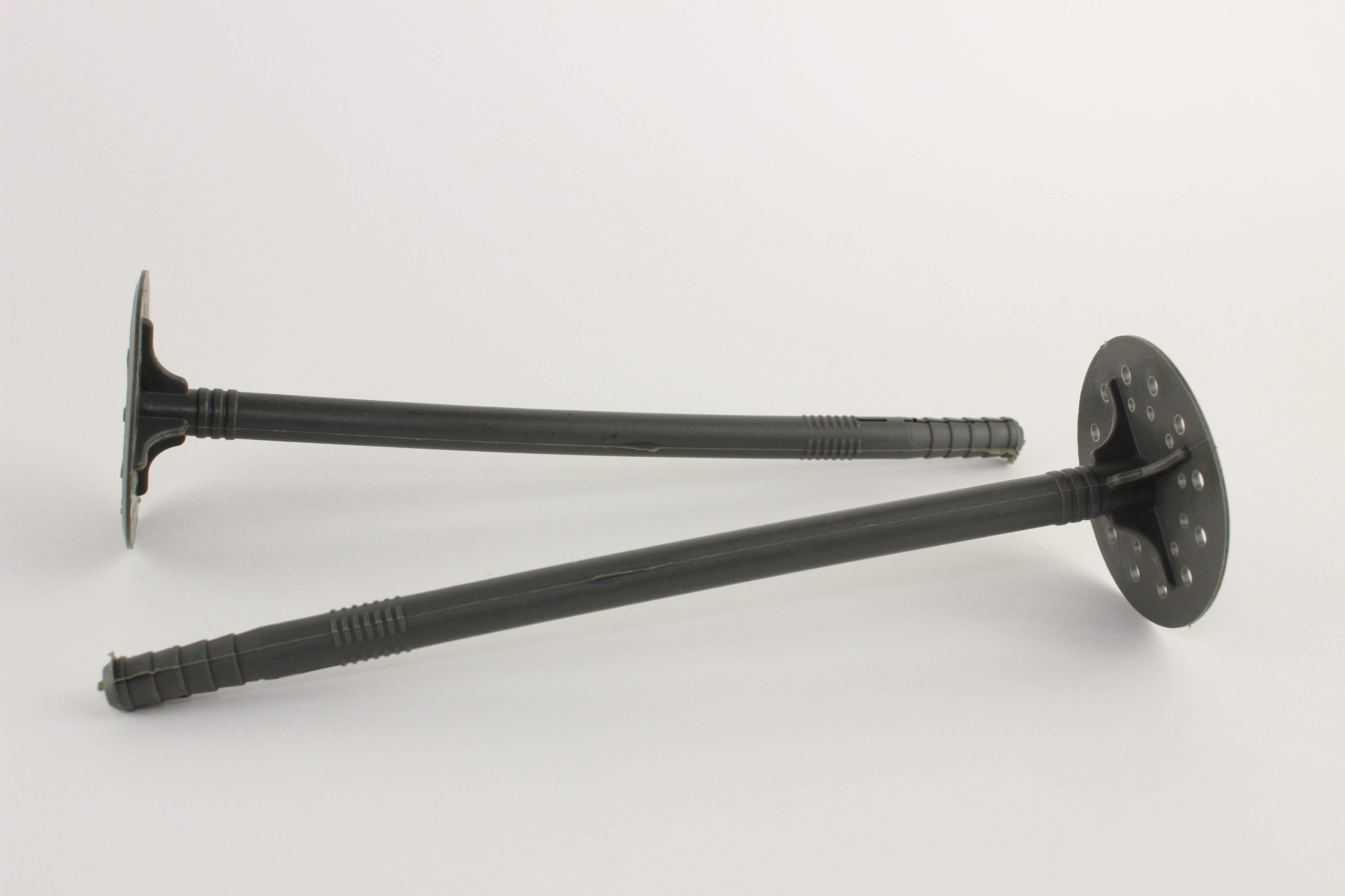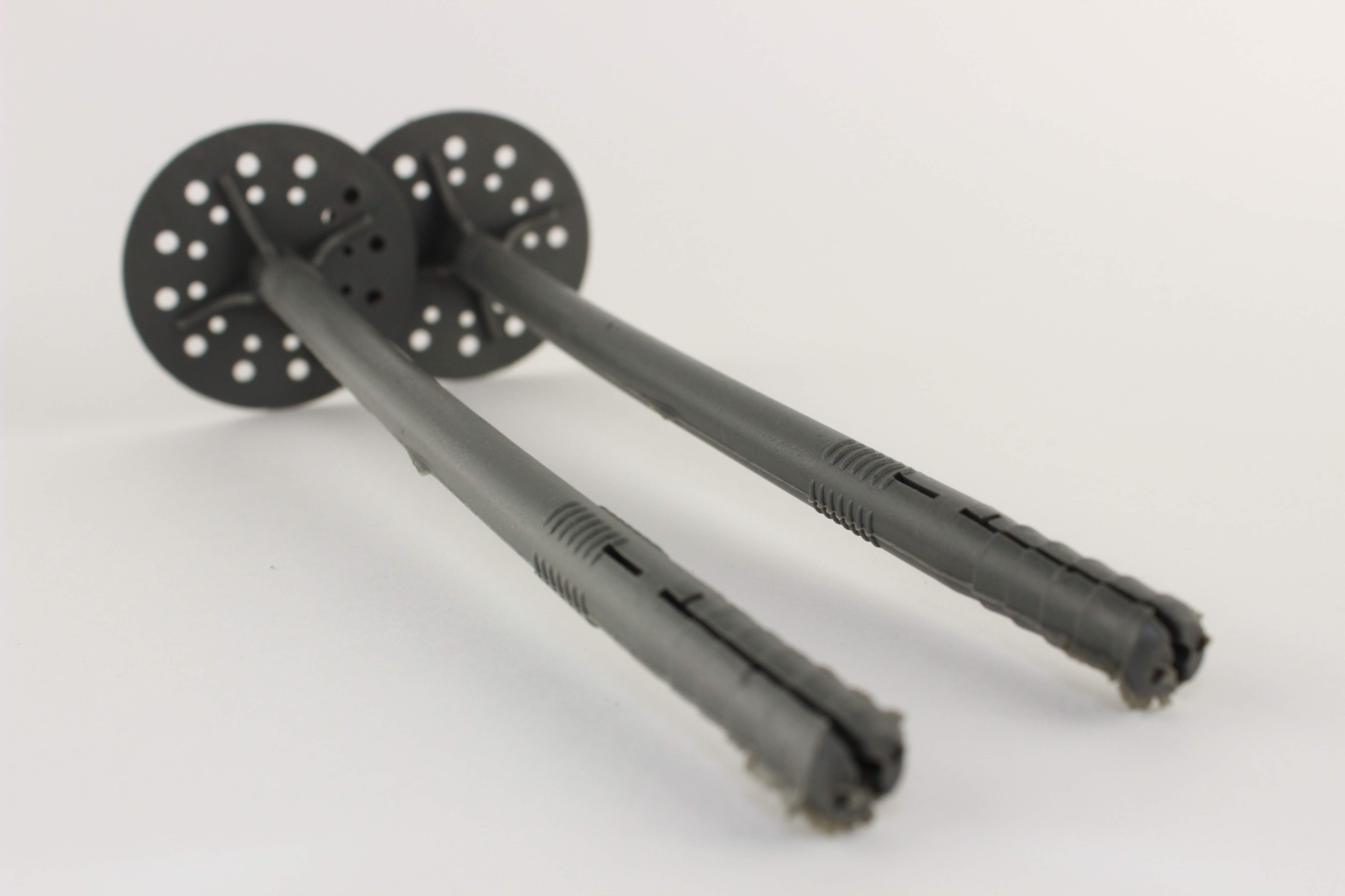 Фасадный дюбель обеспечивает надёжное крепление термоизоляции к монолитным конструкциям, таким как кирпич, бетон, натуральный камень. Крепёжный элемент незаменим при укладке изоляционных материалов на поверхности, подвергающейся неблагоприятному воздействию окружающей среды. При изготовлении дюбеля используются нейлон, полипропилен и полиэтилен низкого давления (ПНД). Конструкция дюбеля выполнена таким образом, чтобы полностью исключить возможность перелома на шейке: увеличенные рёбра жёсткости, не деформирующие слой изоляции, находятся на прижимной пластиковой шайбе.