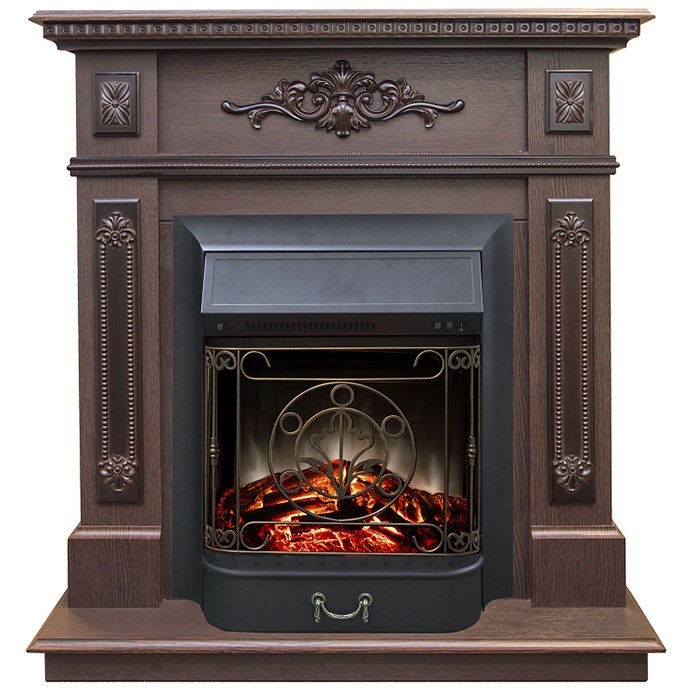 Электрокамин Real Flame Lilian DN c очагом Majestic Lux качественный портал из МДФ и пленки, в цвете DN-F817 "темный орех". Вид портала собранный. Электрический очаг Majestic Lux предназначен для встраивания в стандартные обрамления. В качестве муляжа - сгоревшие дрова. Нагреватель с поддувом спрятан в козырьке очага и обеспечивает обогрев в холодную погоду. Переключатель позволяет включать на полную (1 500 Вт) или половинную (750 Вт) мощность. В режиме визуализации пламени потребление электроэнергии составляет 80 Вт (две свечеобразные лампы E14 мощностью 40W). Преимущества электрокамина Real Flame Lilian DN c очагом Majestic Lux: Тип очага - встраиваемый. Стильный эргономичный дизайн. Компактные установочные размеры. Высокое качество материалов и сборки. Простота в уходе. Низкое энергопотребление. Два режима мощности обогрева, декоративный режим работы. Несложный монтаж, не требующий профессиональных навыков.