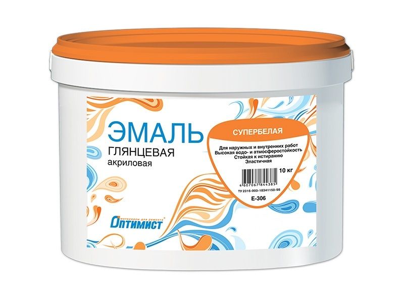 Эмаль Оптимист E306 акриловая глянцевая супербелая 1 кг