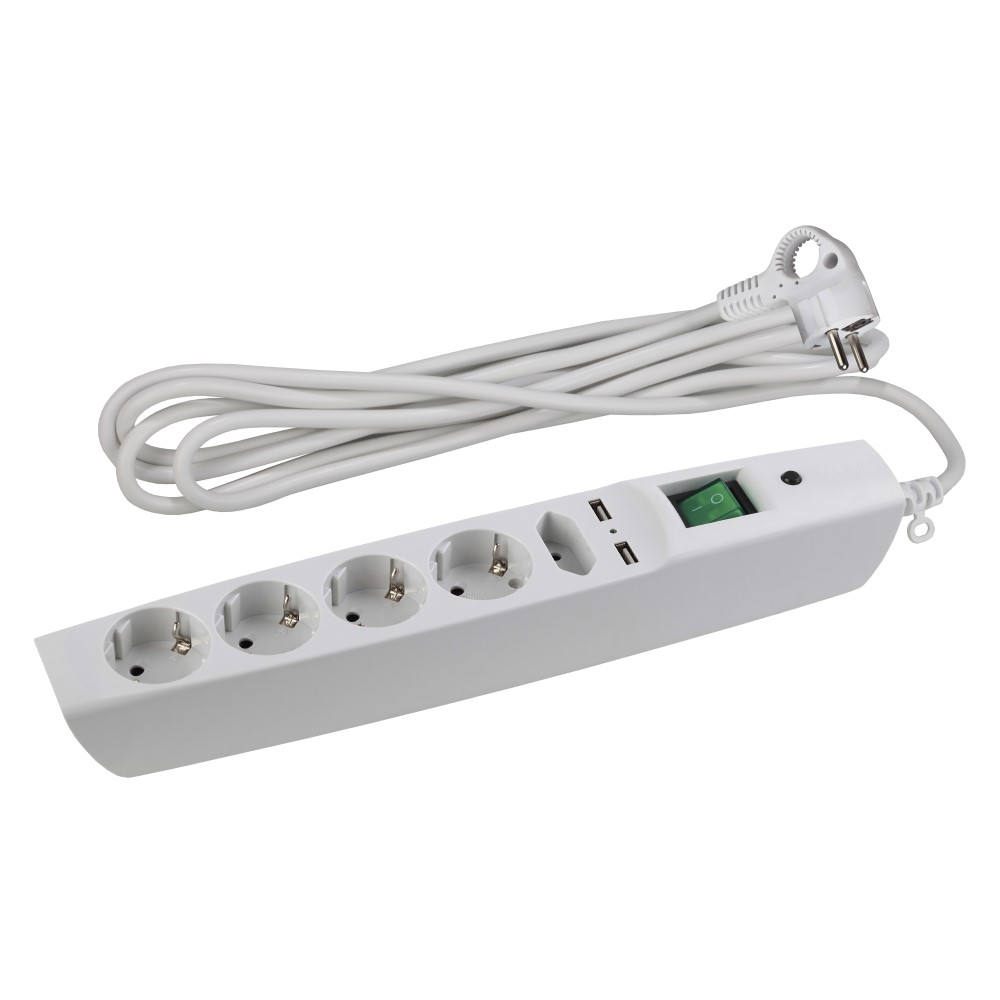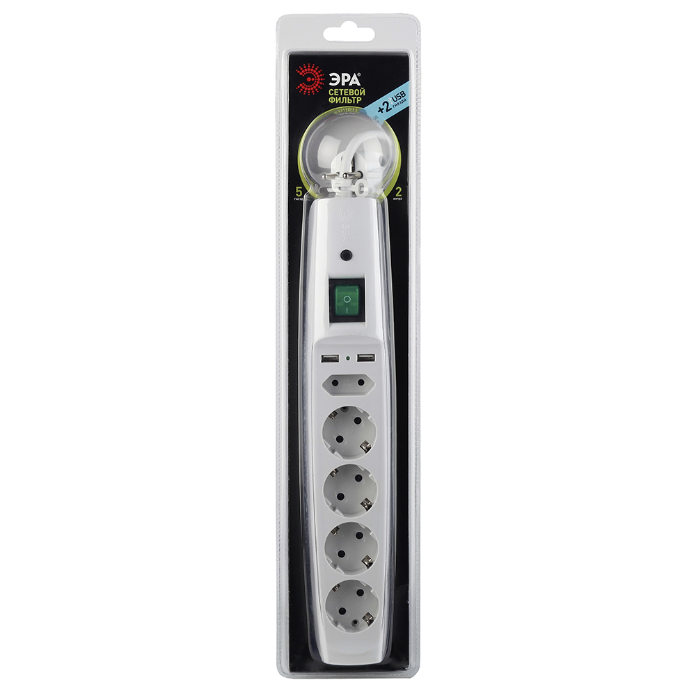 Фильтр сетевой ЭРА SF 5 гнезд + 2 USB 2 м белый