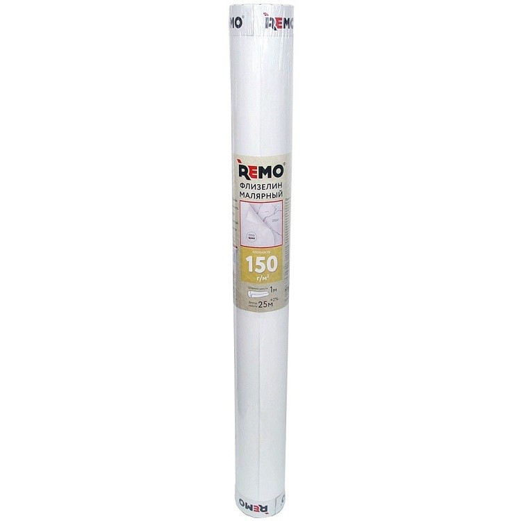Флизелиновый холст Remo – это нетканый материал, состоящий из равномерно распределенных целлюлозных и текстильных волокон. Эти волокна соединяются с помощью полимерного связующего и образуют полотно с определенной плотностью, которое после полимеризации скручивается в рулоны и упаковывается в термоусадочную пленку. Сырьем для производства флизелинового холста служат экологически чистые материалы. Флизелин не вызывает аллергии и не выделяет в воздух токсичных веществ. Флизелиновый холст прочен и сохраняет постоянство размеров. Для строителей важным качеством флизелинового холста является возможность скрывать небольшие трещины, русты, швы между панелями, создавая идеально ровную поверхность. Поверхность материала напоминает мягкий ватман. Флизелин используется в жилых помещениях, офисах, гостиницах, медицинских учреждениях. Такой холст можно применять на различных поверхностях – его можно наклеивать на очищенные от пыли и других загрязнений бетонные и кирпичные поверхности, гипсокартон, ДСП (ДВП) и деревянные основания. Флизелин является идеальной основой как для обоев, так и под покраску. Он может использоваться: как армирующий материал, с последующим нанесением других типов покрытий; в качестве финишного покрытия, с последующей покраской водно-дисперсионными красками. Преимущества малярного флизелина Remo: перекрывает трещины. армирует поверхность. основа для обоев. экологически чистый. легко окрашивается. Флизелиновый холст Remo очень прост в применении: клей наносится на стену, затем накладываются полотна в сухом виде. Клеится в стык без нахлеста. Применение. Рекомендуется тщательно очистить поверхность от пыли и от старых обоев. В случае необходимости, большие трещины и швы следует шпаклевать. Пористые и впитывающие влагу поверхности грунтуются. В качестве грунтовки можно использовать разбавленный клей. Клей наносится равномерно тонким слоем только на участок поверхности, предназначенный под данный обрез полотна. Полотно необходимо уложить на влажный клей и хорошо разгладить щеткой сверху и от центра к краям для удаления воздуха. Отрезать полотно по кромке стены с помощью ножа и шпателя. Следующие полотна укладываются стык в стык. Для наклеивания флизелинового холста необходимо использовать специальный клей. Первое полотно укладывается с помощью отвеса. Флизелиновый холст следует окрашивать водоразбавимыми красками не менее чем в 2-3 слоя. Покраску производить только после полного высыхания.