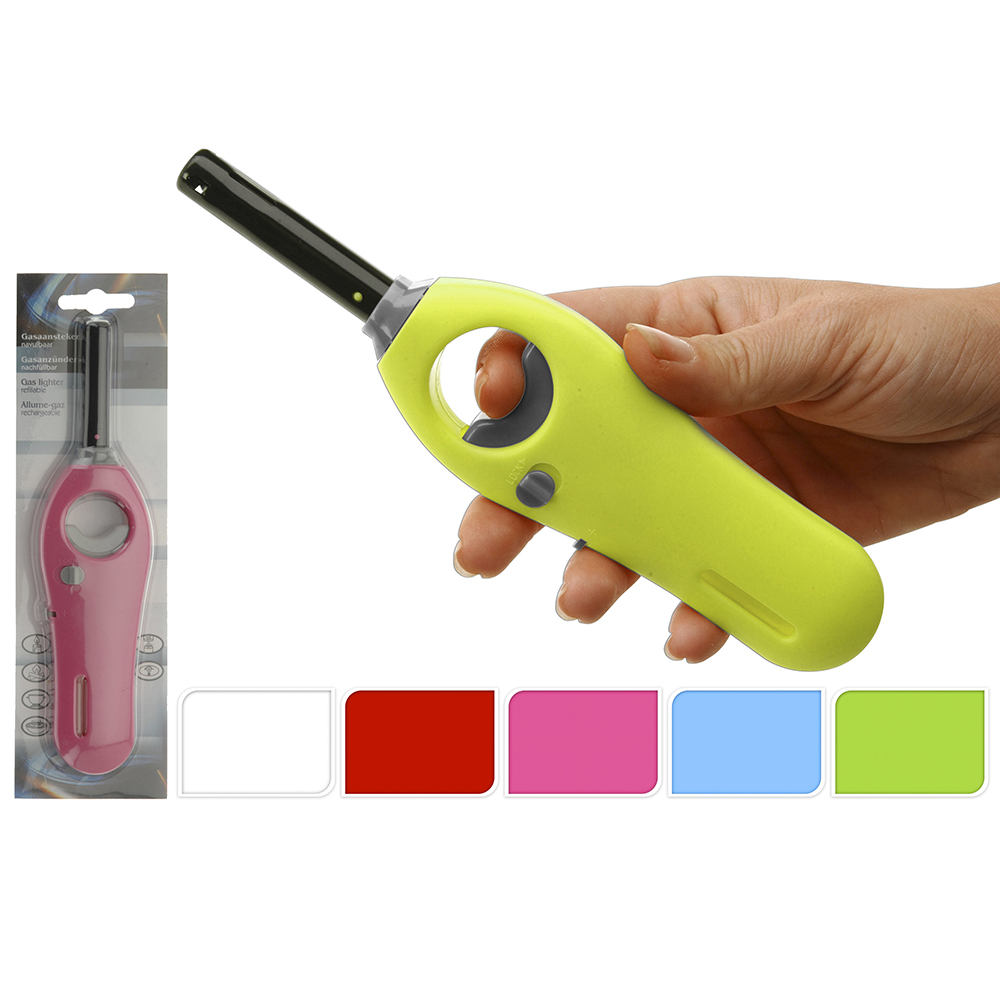 Газовая зажигалка YV1800530 выполнена из качественного пластика и металла, обладает функцией регулировки пламени. Зажигалка уже заправлена газом при покупке, при необходимости ее можно пополнять (через техническое отверстие в нижней части: для заправки используйте только бутан для газовых зажигалок). Преимущества: Универсальная зажигалка для безопасного поджога метана и любого другого газа. Проста в использовании: приложите к газовой горелке, включенной на максимум, и нажмите кнопку зажигалки. Зажигалка подходит для любых газовых плит. Эргономичная ручка не позволит выскользнуть зажигалке из руки. Защита от детей в виде переключателя расположена на боковой части зажигалки. Товар продается в ассортименте. При заказе через интернет-магазин выбор цвета не предусмотрен, поставка зависит от наличия товара на складе.