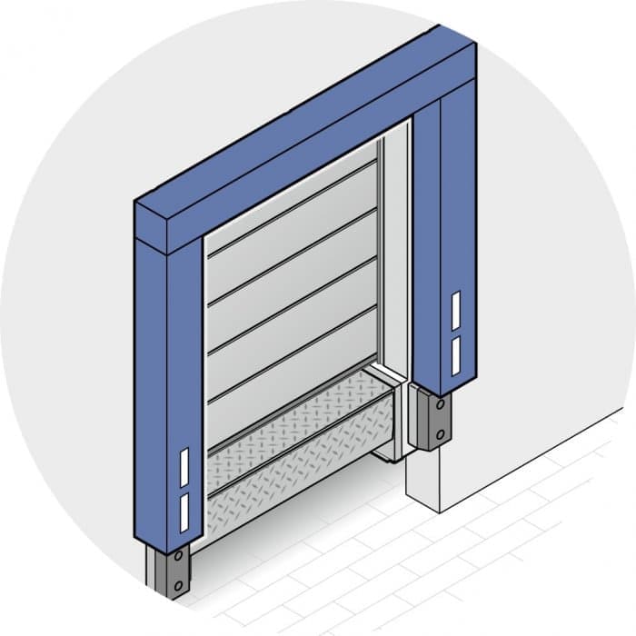 В этом варианте исполнения с прочными боковыми и верхней подушками грузовой автомобиль подъезжает к подушкам, наполненным вспененным материалом, с уже открытыми дверями.