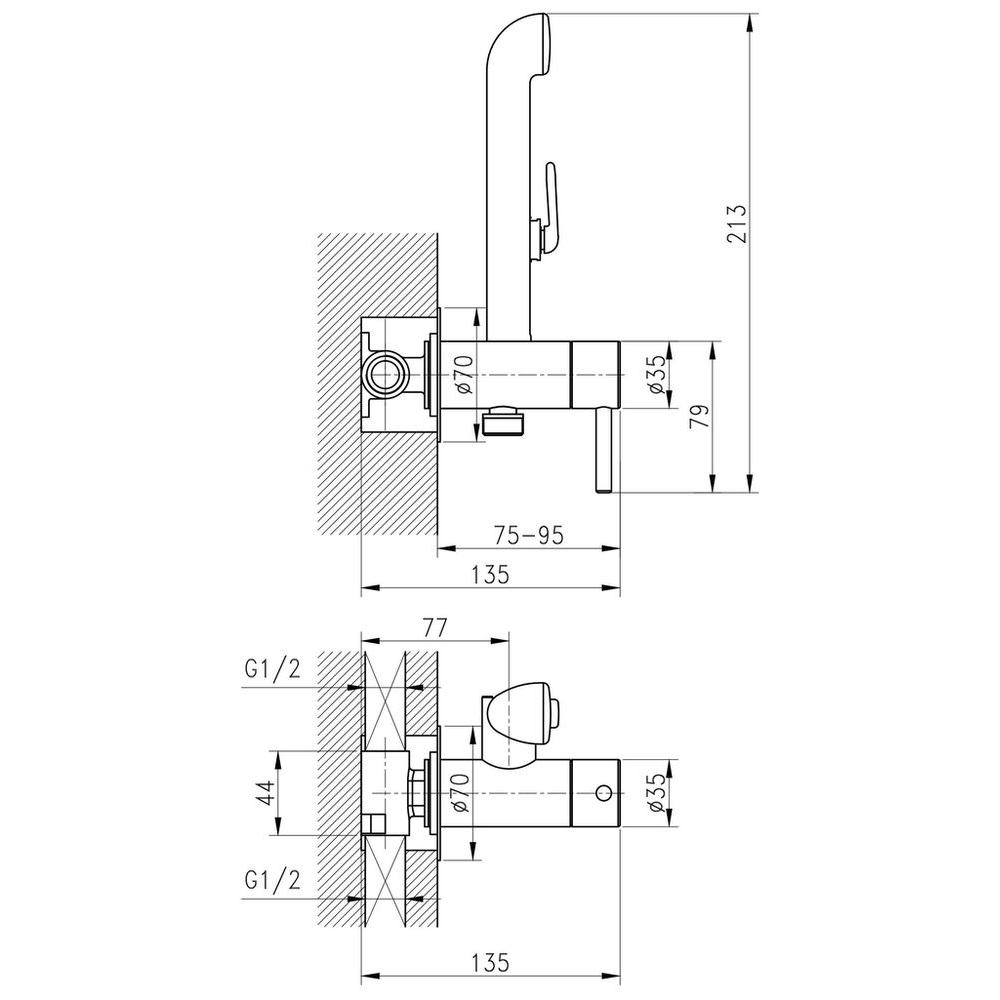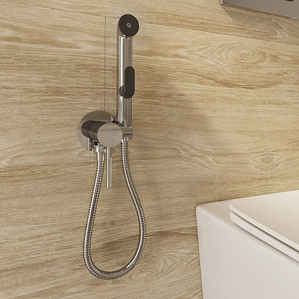 Однорычажный смеситель скрытого монтажа с гигиенической лейкой и шлангом длиной 1,2 м.
