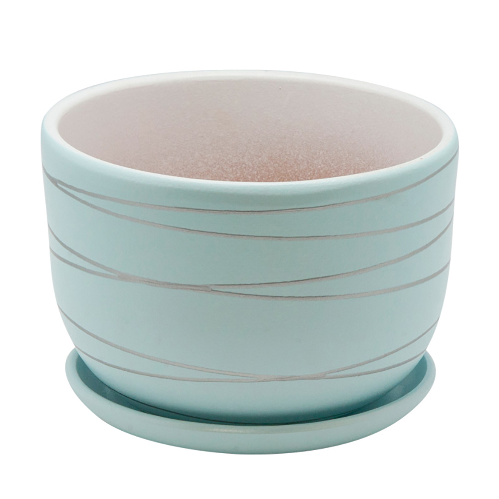 Цветочный горшок из керамики d19 см голубой BH-24-6 прекрасно подходит для высадки растений: — горшок имеет поддон и дренажное отверстие для отвода лишней жидкости. — пористый материал позволяет испаряться лишней влаге; — воздух, необходимый для дыхания корней, проникает сквозь керамические стенки.