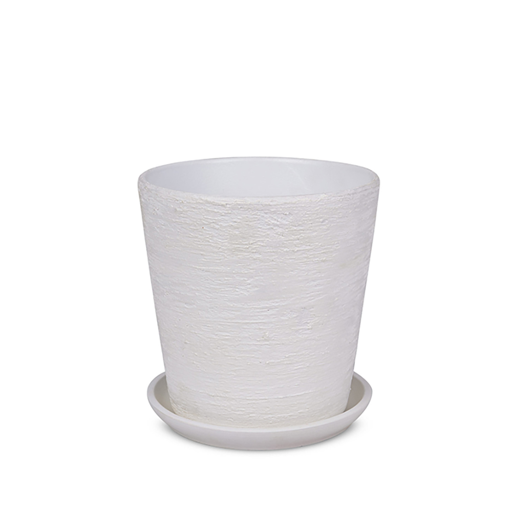 Керамический горшок из глины с текстурной штукатуркой, повторяющей уникальную фактуру бетонных горшков.