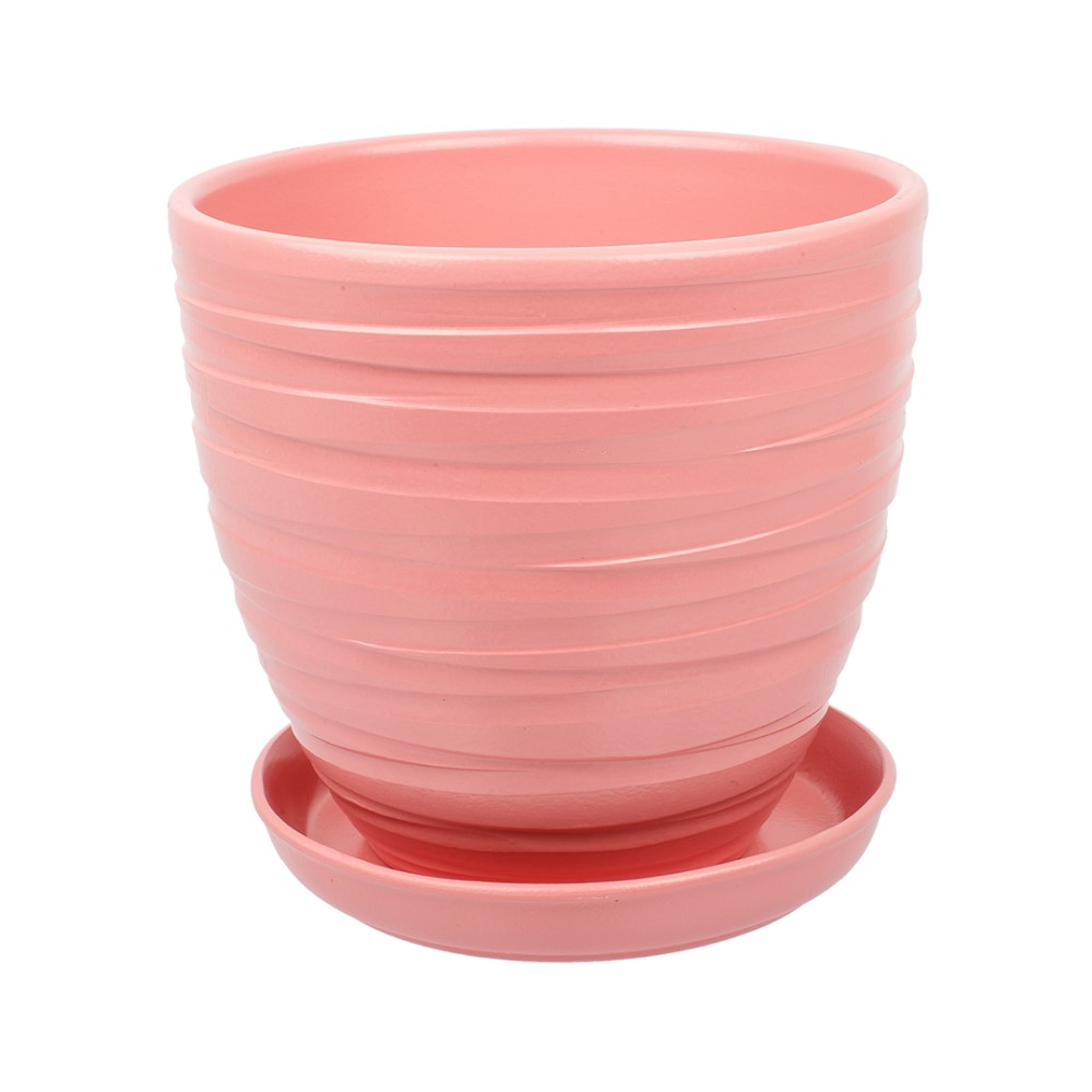 Горшок керамический Рельеф с поддоном D17,5 см розовый