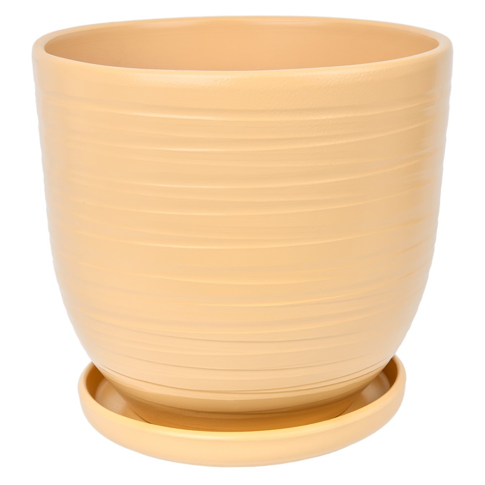 Горшок керамический Рельеф с поддоном D21,5 см песочный