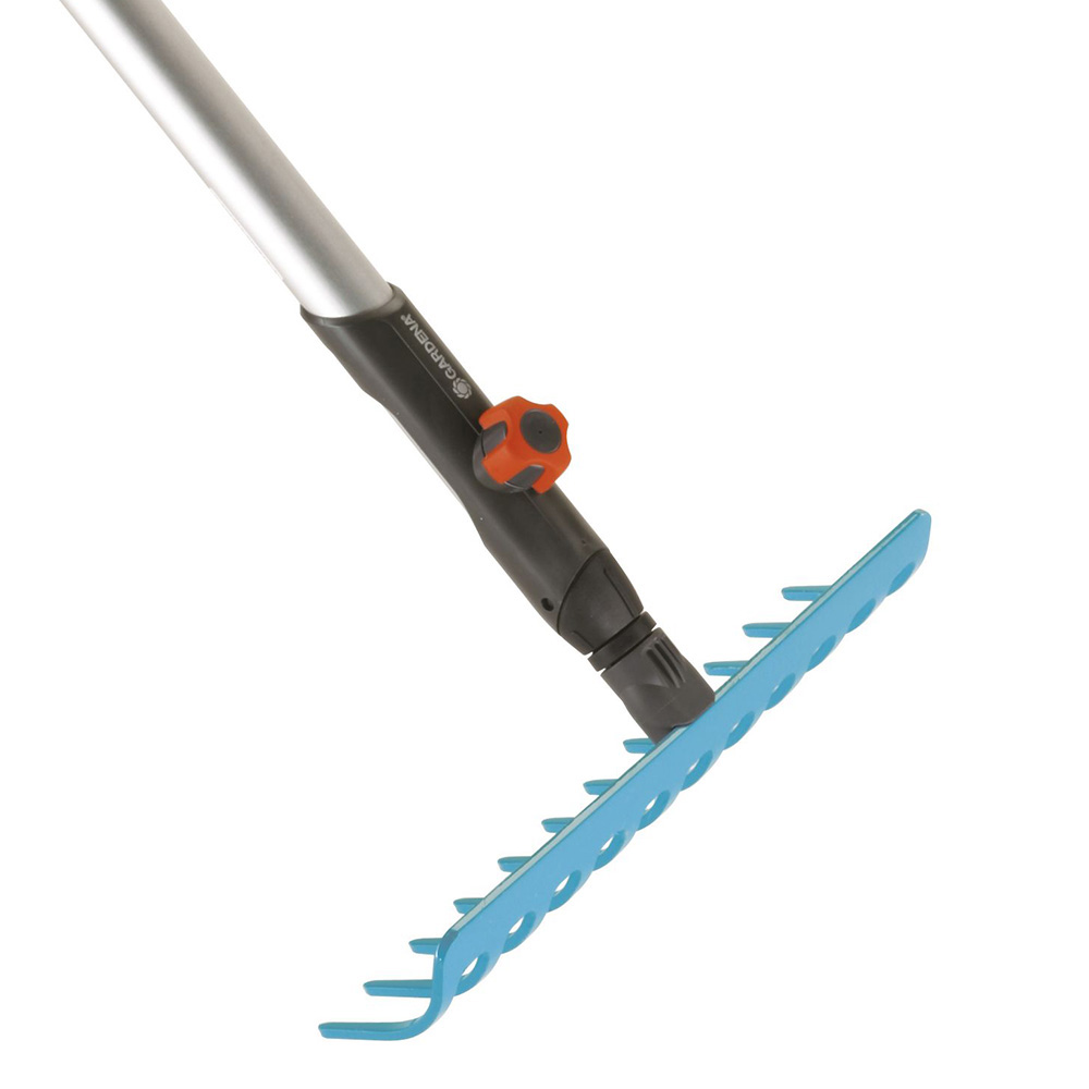 Грабли для комбисистемы Gardena (Гардена) 03024-20.000.00 - многофункциональный ручной инструмент для рыхления, выравнивания грядок, обработки почвы и других работ с почвой. Рабочая часть выполнена из высококачественной стали с покрытием из дюропласта, которое обеспечивает оптимальную защиту инструмента от коррозии. Рабочая ширина граблей - 30 см (12 зубцов). В комплект входит деревянная ручка длиной 130 см. Ручка зауженной формы удобно лежит в руке и предотвращает проскальзывание. Грабли соединяются с ручкой и надежно крепятся винтом.