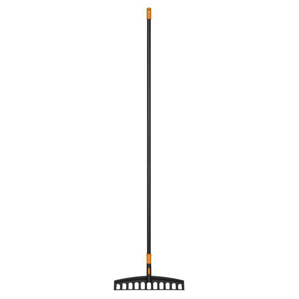 Универсальные садовые грабли Fiskars используются для рыхления земли, выравнивания грядок, сгребания травы и других работ.
