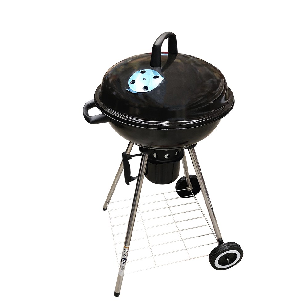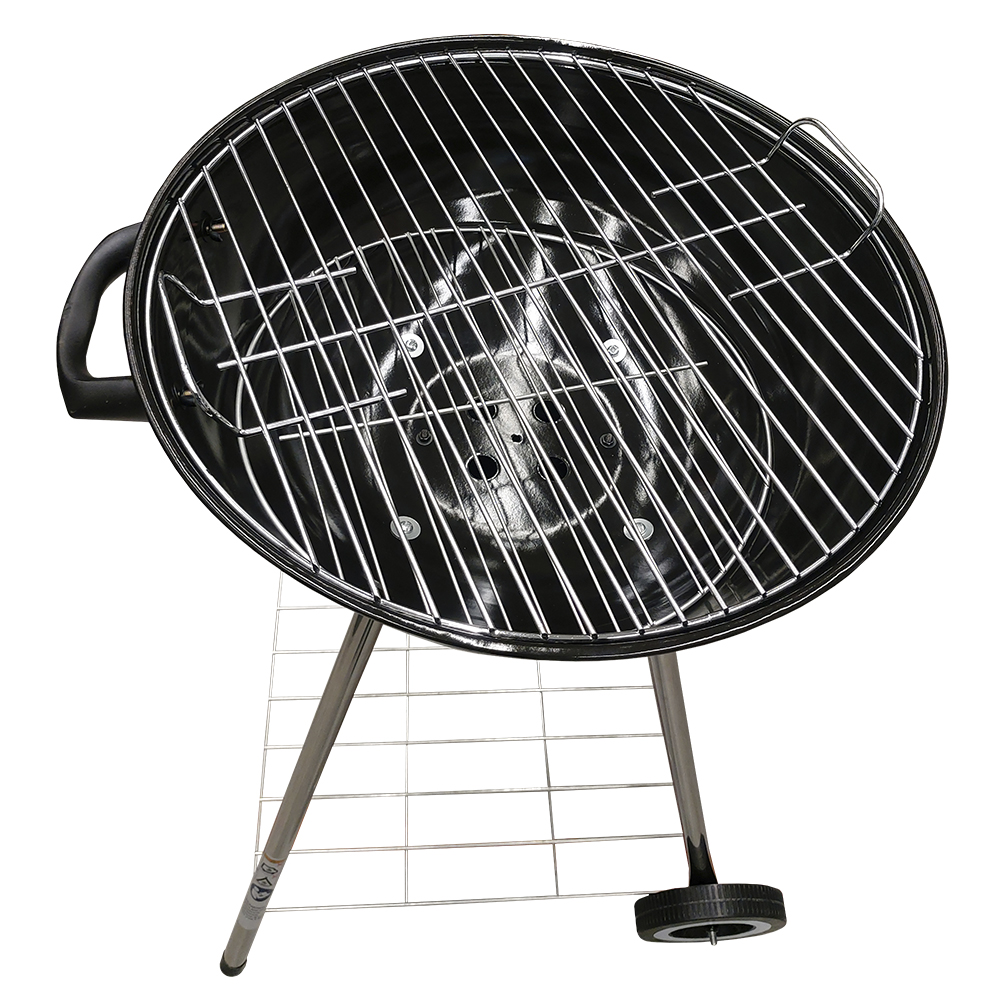 Гриль классической круглой формы мобилен, компактен и удобен в работе. Модель обработана эмалированным жаростойким покрытием, продлевающим его срок службы. При закрытой крышке можно не только жарить, но и тушить продукты. Съемный золоуловитель облегчает уход после использования. Оцинкованная полка предусмотрена для хранения необходимых аксессуаров. В комплекте решетка из жаропрочной стали с хромированным покрытием . Поставляется в разобранном виде. Технические характеристики: Диаметр крышки: 47,5 см. Диаметр решетки: 44 см. Диаметр золоуловителя: 16,8 см. Габариты изделия: 59x49x90 см. Габариты упаковки: 51x22x53 см. Вес нетто: 7,1 кг.