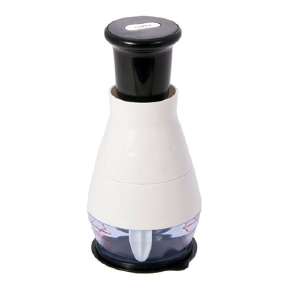 Простой классический чоппер с чашей объемом 200 мл. Пригодится на кухне для того, чтобы быстро порубить зелень, лук, морковку, сельдерей, яйцо. Положите в чашу продукты, закройте чоппер, надавите несколько раз на черный поршень. Лезвия, находящиеся внутри чаши начнут вращаться и быстро измельчат продукты. Такой простой кухонный гаджет ускоряет процесс готовки во много раз.