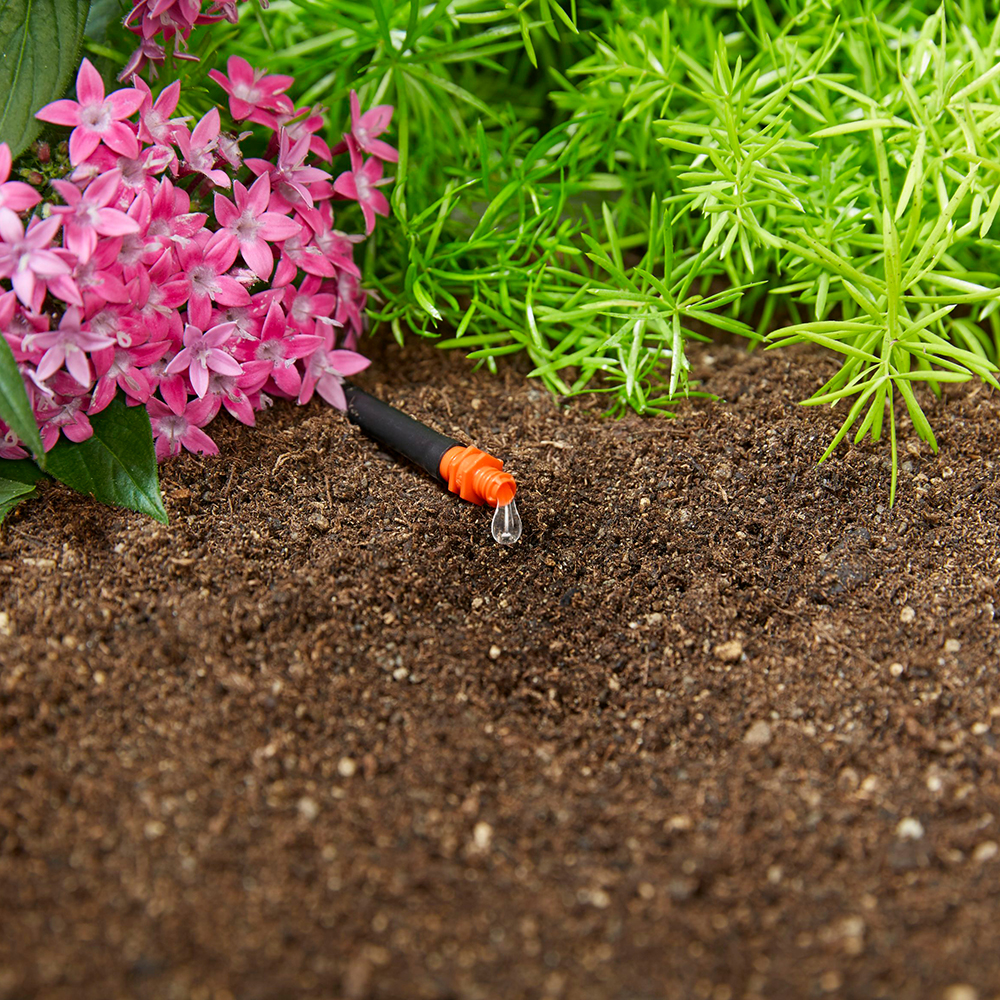 Капельница концевая GARDENA (Гардена) 01340-29.000.00 предназначена для направленного полива отдельно посаженных растений или посаженных в длинный ряд растений с одинаковыми требованиями к водопотреблению (например, живых изгородей). Является элементом системы микрокапельного полива Micro-Drip-System (Микро-Дрип-Сайстем), который обеспечивает точное дозированное орошение каждого растения и рациональное использование воды. Для полива отдельно посаженных растений капельница вставляется в выходной конец подающего шланга диаметром 4,6 мм (3/16 дюйма). Преимущества и особенности: - наличие иглы для удобной прочистки загрязненной капельницы; - производительность капельницы составляет около 2 л/ч; - изделие выполнено из качественного ABS-пластика оранжевого цвета; - благодаря запатентованной технологии быстрого подсоединения 'Quick & Easy', все элементы системы легко соединяются/разъединяются по мере необходимости. Капельницу можно напрямую установить в магистральный шланг диаметром 13 мм 1/2 дюйма, сделав в шланге отверстие с помощью инструмента для сборки (приобретается отдельно). В комплект поставки входят 25 капельниц и одна игла для прочистки.