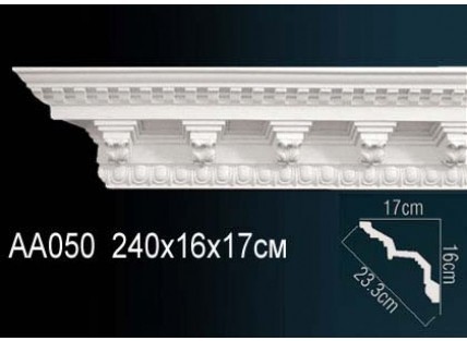 Карниз потолочный полиуретановый Перфект AA050 - это декоративный элемент, соединяющий шов между потолком и стенами. Он скрывает неровности, качественно стыкуется, подчеркивает стильное оформление интерьера. Карниз с орнаментом — яркое стилевое решение для соответствующих помещений. Выполнен в белом цвете. Этот цвет является универсальным, благодаря чему он отлично дополнит и лучшим образом обыграет любой интерьер. Предварительно загрунтован – такая поверхность идеальна для качественной покраски. Карниз является важным инструментом любого дизайнера и архитектора. Карнизы используются для декоративной отделки жилых и офисных помещений, частных домов, административных зданий. Имитация гипсовой лепнины из прочного, долговечного полимера обладает множеством преимуществ, ее применение открывает безграничные возможности при реализации различных дизайнерских решений. С помощью потолочных карнизов изменяют визуальное восприятие внутреннего пространства комнаты, воплощают заданное при проектировании стилистическое оформление интерьера. Выполнен из полиуретана высокого качества, полностью соответствующего всем нормам экологической безопасности. Полиуретан, по сравнению с гипсом, имеет ряд положительных преимуществ: прочность, жесткость, гибкость, легкость, долговечность, влаго- и термоустойчивость, сохранение цвета, защита от поглощения запахов. Помимо вышеперечисленного, лепнина из полиуретана даже спустя время сохраняет четкость рисунка, рельеф, свою форму. Преимущества лепного декора из полиуретана Перфект: Высокая прочность, гибкость, минимальный вес, не нагружающий стены. Изделия уже загрунтованы и не нуждаются в какой-либо обработке. Легко подгоняются по размеру и не требуют специальных навыков при монтаже. Водонепроницаемы и не поражаются плесенью. Не впитывают загрязнения благодаря гладкой поверхности. Добиться предельной точности конфигурации и высокого качества изделий помогают новейшее оборудование и передовые технологии производства. Лепнина применяется для скрытия неровностей, дефектов и изъянов поверхностей, что немаловажно, т.к. тщательная подгонка уже не требуется и заметно облегчает работу при монтаже. Благодаря легкому весу лепнина может применяться на любом этапе проведения ремонта, без дополнительной нагрузки на стены. Обратите внимание! При склеивании изделий из полиуретана друг с другом обязательно необходим стыковочный клей Перфект!. Под покраску - да