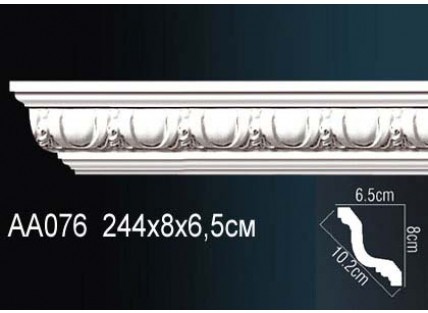 Карниз потолочный полиуретановый Перфект AA076 - это декоративный элемент, соединяющий шов между потолком и стенами. Он скрывает неровности, качественно стыкуется, подчеркивает стильное оформление интерьера. Карниз с орнаментом — яркое стилевое решение для соответствующих помещений. Выполнен в белом цвете. Этот цвет является универсальным, благодаря чему он отлично дополнит и лучшим образом обыграет любой интерьер. Предварительно загрунтован – такая поверхность идеальна для качественной покраски. Карниз является важным инструментом любого дизайнера и архитектора. Карнизы используются для декоративной отделки жилых и офисных помещений, частных домов, административных зданий. Имитация гипсовой лепнины из прочного, долговечного полимера обладает множеством преимуществ, ее применение открывает безграничные возможности при реализации различных дизайнерских решений. С помощью потолочных карнизов изменяют визуальное восприятие внутреннего пространства комнаты, воплощают заданное при проектировании стилистическое оформление интерьера. Выполнен из полиуретана высокого качества, полностью соответствующего всем нормам экологической безопасности. Полиуретан, по сравнению с гипсом, имеет ряд положительных преимуществ: прочность, жесткость, гибкость, легкость, долговечность, влаго- и термоустойчивость, сохранение цвета, защита от поглощения запахов. Помимо вышеперечисленного, лепнина из полиуретана даже спустя время сохраняет четкость рисунка, рельеф, свою форму. Преимущества лепного декора из полиуретана Перфект: Высокая прочность, гибкость, минимальный вес, не нагружающий стены. Изделия уже загрунтованы и не нуждаются в какой-либо обработке. Легко подгоняются по размеру и не требуют специальных навыков при монтаже. Водонепроницаемы и не поражаются плесенью. Не впитывают загрязнения благодаря гладкой поверхности. Добиться предельной точности конфигурации и высокого качества изделий помогают новейшее оборудование и передовые технологии производства. Лепнина применяется для скрытия неровностей, дефектов и изъянов поверхностей, что немаловажно, т.к. тщательная подгонка уже не требуется и заметно облегчает работу при монтаже. Благодаря легкому весу лепнина может применяться на любом этапе проведения ремонта, без дополнительной нагрузки на стены. Обратите внимание! При склеивании изделий из полиуретана друг с другом обязательно необходим стыковочный клей Перфект!. Под покраску - да