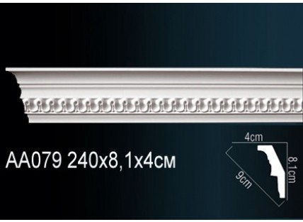 Карниз потолочный полиуретановый Перфект AA079 - это декоративный элемент, соединяющий шов между потолком и стенами. Он скрывает неровности, качественно стыкуется, подчеркивает стильное оформление интерьера. Карниз с орнаментом — яркое стилевое решение для соответствующих помещений. Выполнен в белом цвете. Этот цвет является универсальным, благодаря чему он отлично дополнит и лучшим образом обыграет любой интерьер. Предварительно загрунтован – такая поверхность идеальна для качественной покраски. Карниз является важным инструментом любого дизайнера и архитектора. Карнизы используются для декоративной отделки жилых и офисных помещений, частных домов, административных зданий. Имитация гипсовой лепнины из прочного, долговечного полимера обладает множеством преимуществ, ее применение открывает безграничные возможности при реализации различных дизайнерских решений. С помощью потолочных карнизов изменяют визуальное восприятие внутреннего пространства комнаты, воплощают заданное при проектировании стилистическое оформление интерьера. Выполнен из полиуретана высокого качества, полностью соответствующего всем нормам экологической безопасности. Полиуретан, по сравнению с гипсом, имеет ряд положительных преимуществ: прочность, жесткость, гибкость, легкость, долговечность, влаго- и термоустойчивость, сохранение цвета, защита от поглощения запахов. Помимо вышеперечисленного, лепнина из полиуретана даже спустя время сохраняет четкость рисунка, рельеф, свою форму. Преимущества лепного декора из полиуретана Перфект: Высокая прочность, гибкость, минимальный вес, не нагружающий стены. Изделия уже загрунтованы и не нуждаются в какой-либо обработке. Легко подгоняются по размеру и не требуют специальных навыков при монтаже. Водонепроницаемы и не поражаются плесенью. Не впитывают загрязнения благодаря гладкой поверхности. Добиться предельной точности конфигурации и высокого качества изделий помогают новейшее оборудование и передовые технологии производства. Лепнина применяется для скрытия неровностей, дефектов и изъянов поверхностей, что немаловажно, т.к. тщательная подгонка уже не требуется и заметно облегчает работу при монтаже. Благодаря легкому весу лепнина может применяться на любом этапе проведения ремонта, без дополнительной нагрузки на стены. Обратите внимание! При склеивании изделий из полиуретана друг с другом обязательно необходим стыковочный клей Перфект!. Под покраску - да