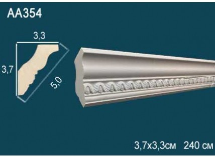 Карниз потолочный полиуретановый Перфект AA354 - это декоративный элемент, соединяющий шов между потолком и стенами. Он скрывает неровности, качественно стыкуется, подчеркивает стильное оформление интерьера. Карниз с орнаментом — яркое стилевое решение для соответствующих помещений. Выполнен в белом цвете. Этот цвет является универсальным, благодаря чему он отлично дополнит и лучшим образом обыграет любой интерьер. Предварительно загрунтован – такая поверхность идеальна для качественной покраски. Карниз является важным инструментом любого дизайнера и архитектора. Карнизы используются для декоративной отделки жилых и офисных помещений, частных домов, административных зданий. Имитация гипсовой лепнины из прочного, долговечного полимера обладает множеством преимуществ, ее применение открывает безграничные возможности при реализации различных дизайнерских решений. С помощью потолочных карнизов изменяют визуальное восприятие внутреннего пространства комнаты, воплощают заданное при проектировании стилистическое оформление интерьера. Выполнен из полиуретана высокого качества, полностью соответствующего всем нормам экологической безопасности. Полиуретан, по сравнению с гипсом, имеет ряд положительных преимуществ: прочность, жесткость, гибкость, легкость, долговечность, влаго- и термоустойчивость, сохранение цвета, защита от поглощения запахов. Помимо вышеперечисленного, лепнина из полиуретана даже спустя время сохраняет четкость рисунка, рельеф, свою форму. Преимущества лепного декора из полиуретана Перфект: Высокая прочность, гибкость, минимальный вес, не нагружающий стены. Изделия уже загрунтованы и не нуждаются в какой-либо обработке. Легко подгоняются по размеру и не требуют специальных навыков при монтаже. Водонепроницаемы и не поражаются плесенью. Не впитывают загрязнения благодаря гладкой поверхности. Добиться предельной точности конфигурации и высокого качества изделий помогают новейшее оборудование и передовые технологии производства. Лепнина применяется для скрытия неровностей, дефектов и изъянов поверхностей, что немаловажно, т.к. тщательная подгонка уже не требуется и заметно облегчает работу при монтаже. Благодаря легкому весу лепнина может применяться на любом этапе проведения ремонта, без дополнительной нагрузки на стены. Обратите внимание! При склеивании изделий из полиуретана друг с другом обязательно необходим стыковочный клей Перфект!. Под покраску - да