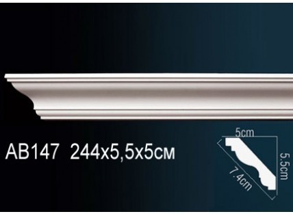 Карниз Перфект AB147 потолочный полиуретановый 2440х55х50 мм