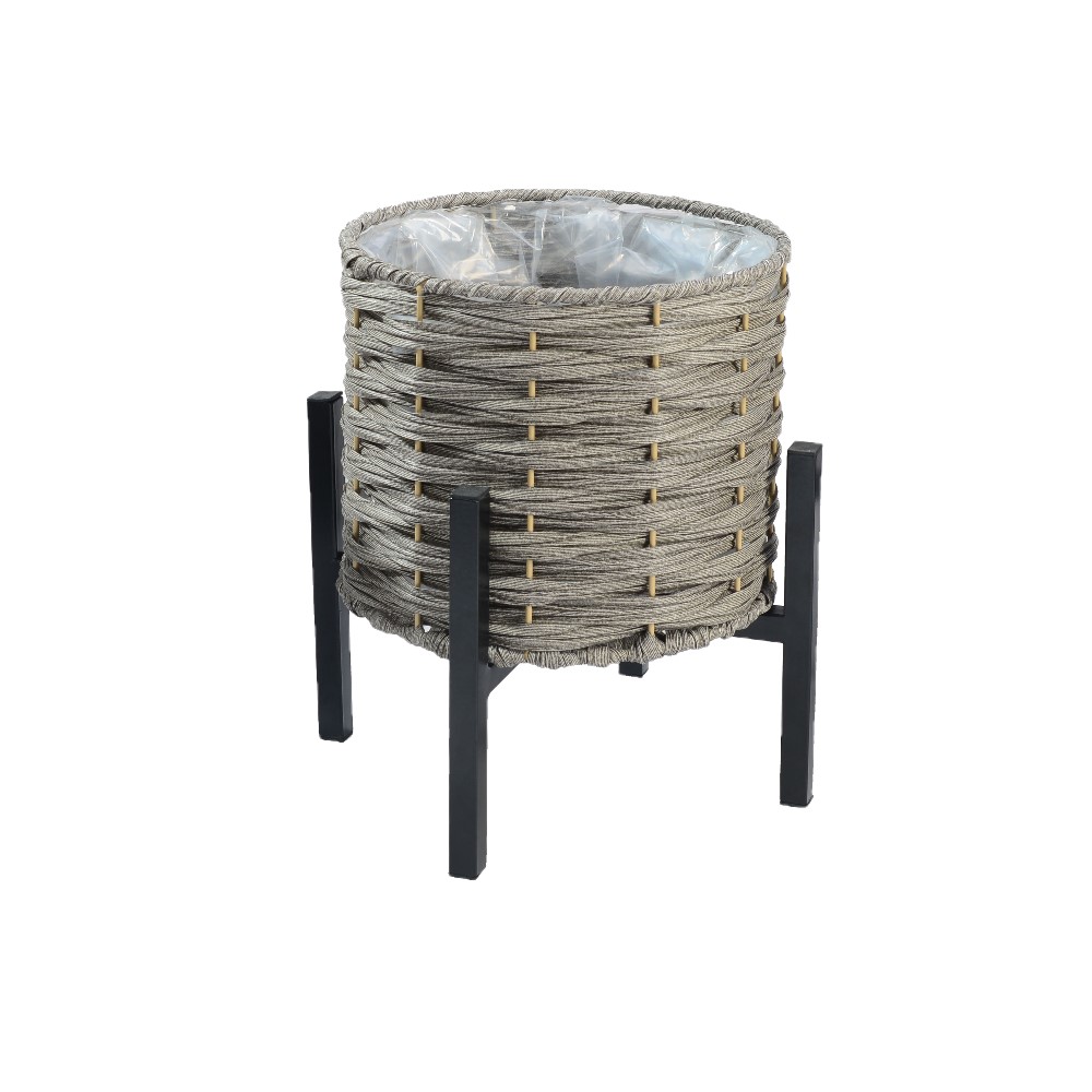 Кашпо плетеное серое на металлических ножках d27 см