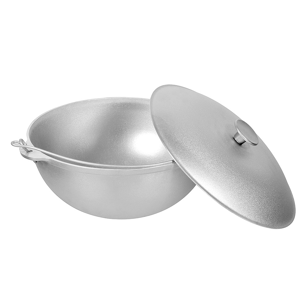 Казан алюминиевый с крышкой рассчитан на 6 литров. Казан имеет форму азиатской чаши.