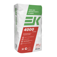 Клей ЕК 4000 TITAN – смесь сухая строительная клеевая C1 Т, ГОСТ Р 56387-2018. Изготовлена на основе цементного вяжущего, минеральных наполнителей, фракционированного песка и модифицирующих добавок, улучшающих эксплуатационные свойства.