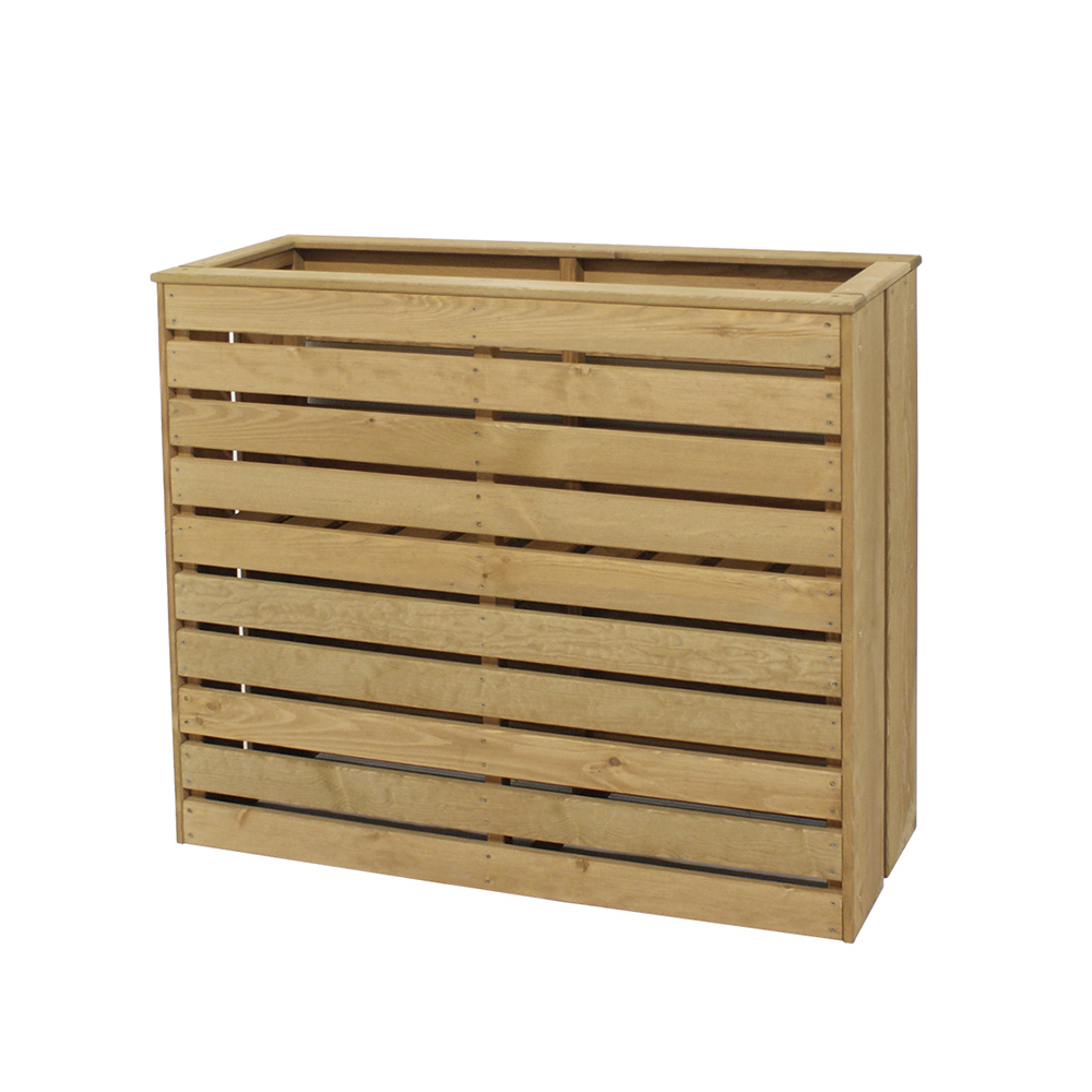 Ящик изготовлен из соснового бруса, обработанного морилкой на водной основе. Применяется для создания композиций из цветов, хвойников, ампельных растений. Метод крепления досок - комбинированный. Преимущества: - презентабельный внешний вид; - натуральный природный материал; - оптимальные размеры изделия отлично подходят для зонирования; - полочка для установки горшков в комплекте. Поставляется в разобранном виде. Все крепежные элементы в комплекте. Габариты упаковки: 101x91x13 см.