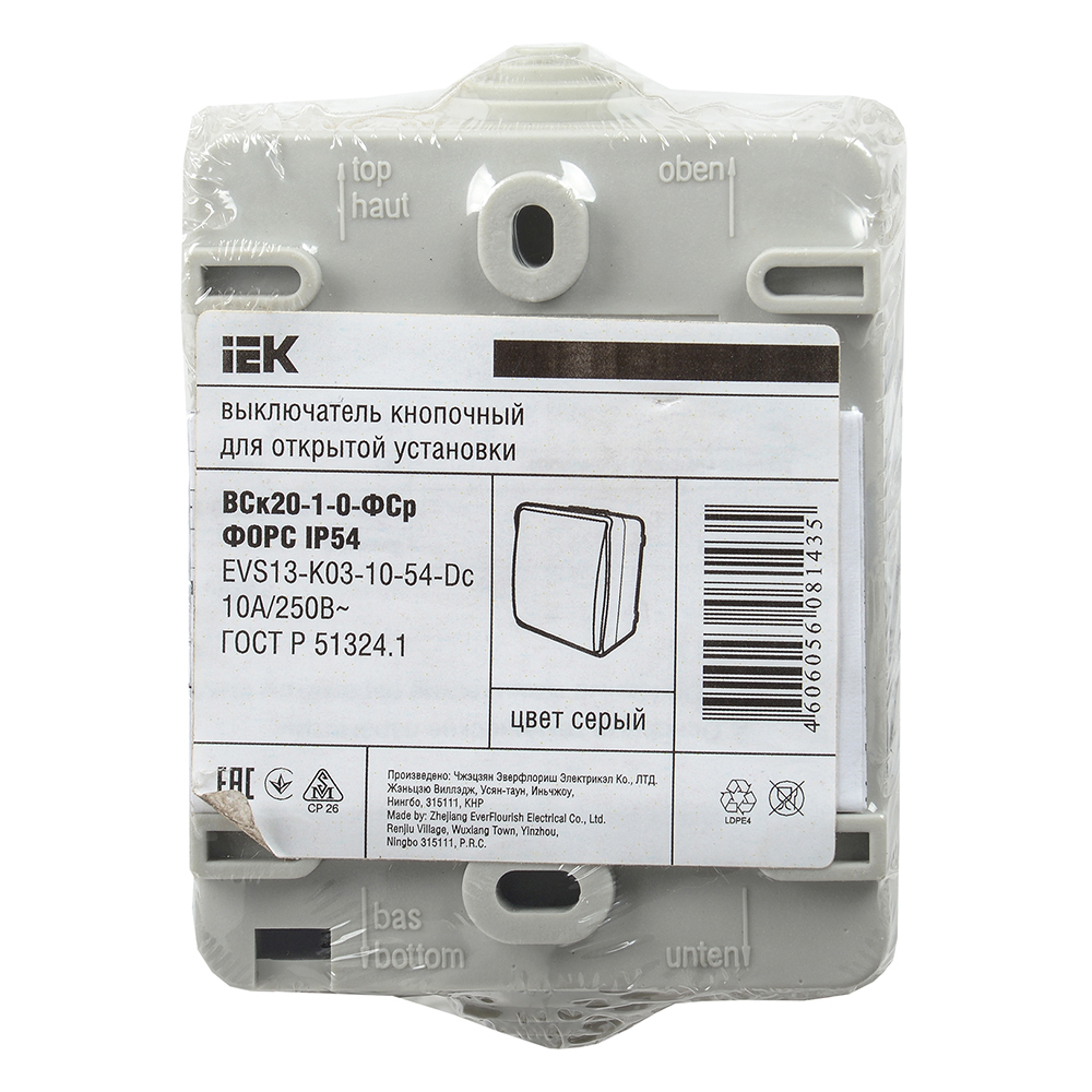 Кнопка звонка IEK Форс серая