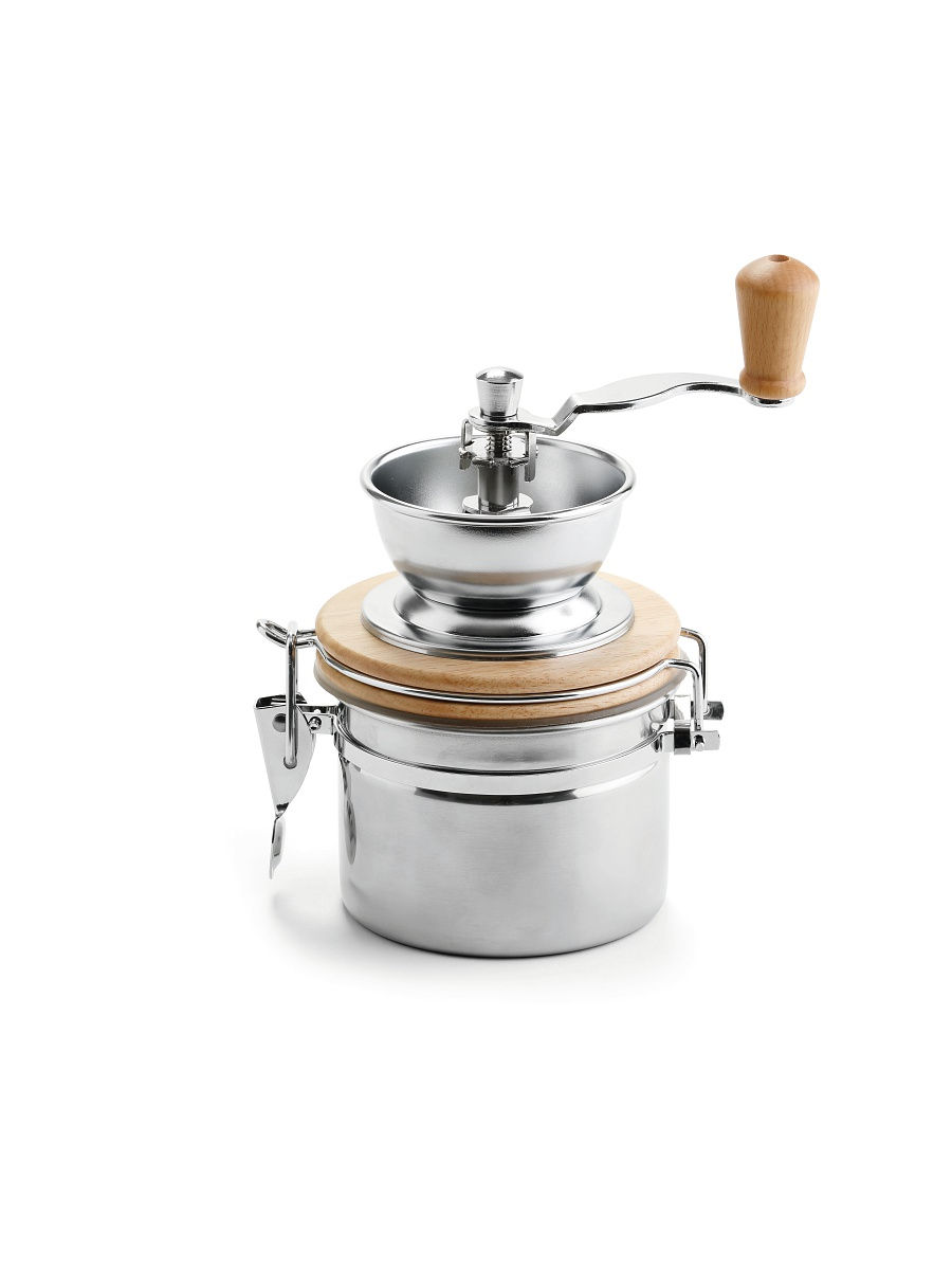 Ручная кофемолка с керамическим механизмом. Обеспечит равномерный помол и идеально подойдет для ценителей кофе. Высота 17 см, диаметр 9,5 см Данный прибор выполнен из нержавеющей стали, силикона, дерева и керамики.