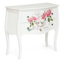 Комод с 2-мя ящиками из красного дерева воспроизводит идеальные пропорции старых французских образцов в стиле «Прованс» с великолепным принтом Fleurimont (почтовая открытка).