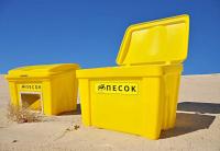 Контейнер для хранения песка, пескосоляной смеси, противогололедных реагентов в местах использования (дворовые территории, остановочные комплексы, территории предприятий и организаций). Материал: ротационный полимер повышенной плотности. 100% стойкость ко всем агрессивным средам (соль, щелочь, кислота). Срок эксплуатации не ограничен.