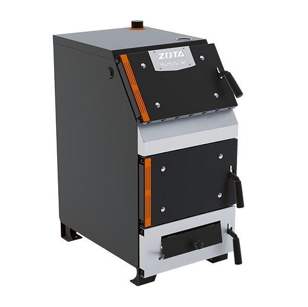 Преимущества твердотопливных котлов серии ZOTA «Тополь-ВК». Топливо: уголь, дрова, топливные брикеты; работа в системах с давлением до 3 атмосфер; корпус котла теплоизолированный и газоплотный; водяная рубашка покрыта базальтовым картоном, снижающим теплопотери; загрузка топлива в вертикальной и горизонтальной плоскостях (обеспечивают топочные дверцы, закрывающиеся на замок); регулируемая поддувальная заслонка дверцы зольника (регулировка осуществляется с помощью винта в ручном режиме или управляется механическим регулятором тяги - опция); наиболее высокий КПД среди бюджетных моделей твердотопливных и комбинированных котлов; увеличенная площадь теплообмена повышает эффективность теплоотдачи; термометр на верхней панели котла (для измерения температуры подачи воды); отдельная зольная дверца позволяет удалять золу в любой момент топки котла.