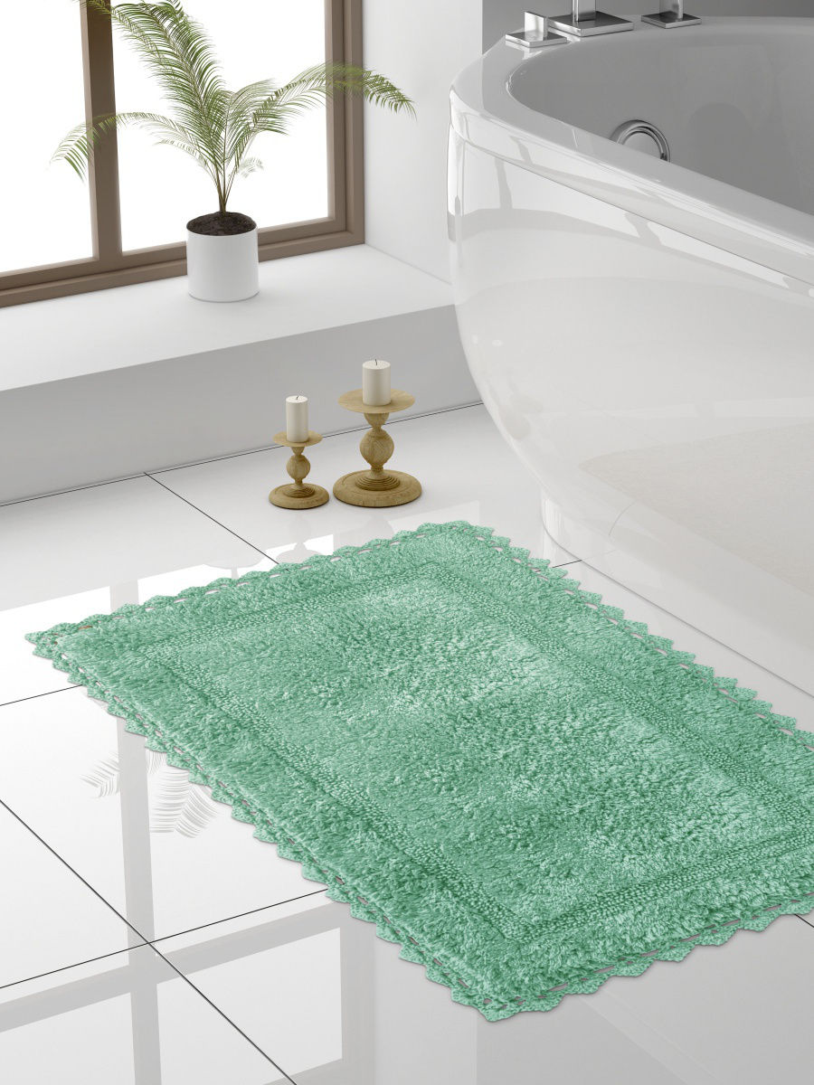 Коврик для ванной комнаты изготовлен из 100 процентного Индийского хлопка. Хлопок обладает отличными впитывающими свойствами, быстро сохнет, гигиеничен. Хлопковая нить, оборотной стороны коврика пропитана резиновым противоскользящим составом, который позволяет ему быть устойчивым на любой поверхности. Возможна стирка изделия с применением нейтрального моющего средства.