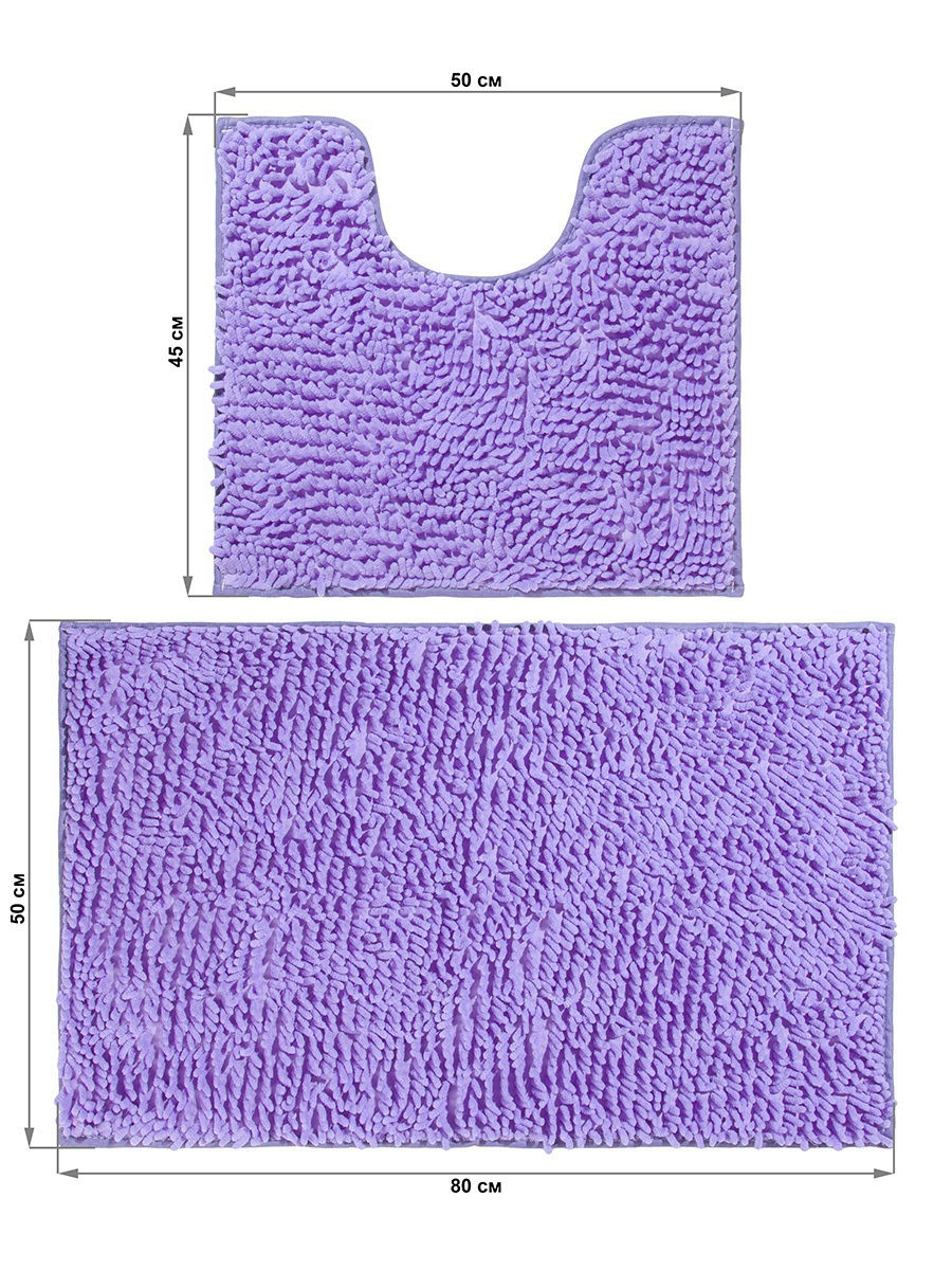 Набор состоит из двух ковриков - универсального - размером 80 х 50 см и коврика с выемкой размером 50 х 45 см. Коврики выполнены из качественного полиэстера с антискользящим покрытием. Ворс ковриков мягкий, плотный и приятный на ощупь. Коврики быстро сохнут и не накапливают влагу. Коврики можно стирать в стиральной машине при температуре 30С. Коврики идеально подходят для использования в ванной комнате, но можно использовать и в любом другом помещении. В ассортименте представлены наборы ковриков различных цветов от ярких до пастельных - каждый сможет подобрать подходящий интерьеру набор.