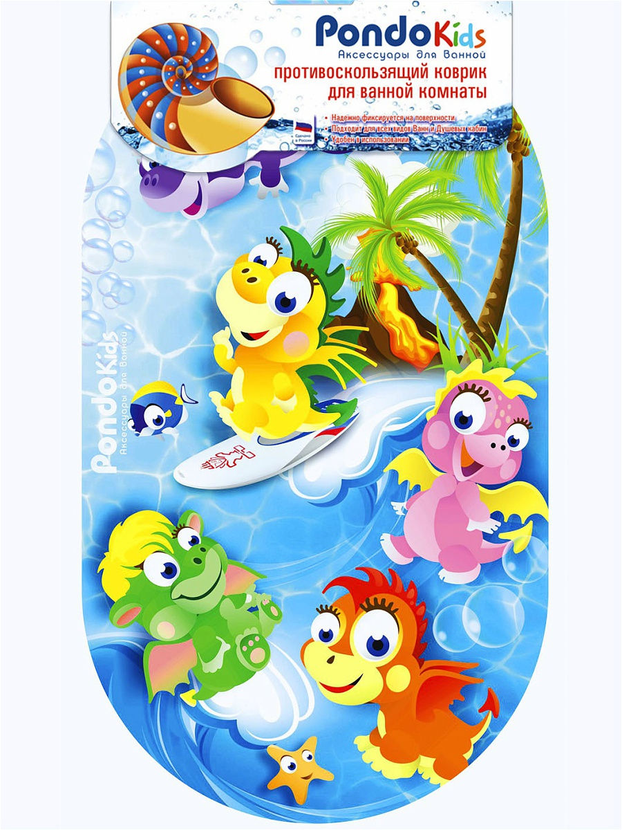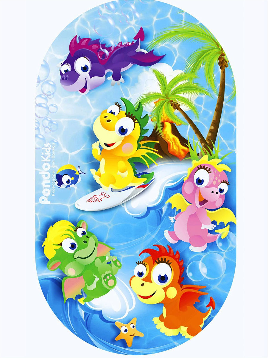 Коврик Pondo Дракоши для ванны на присосках детский 69x39 см
