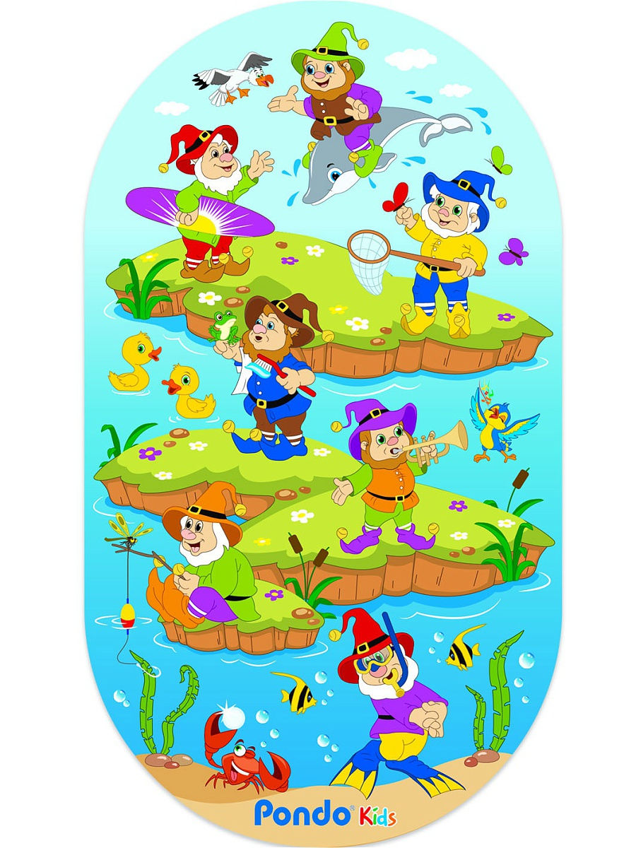 "Гномики " - Детский коврик для купания и игр в ванне ТМ "Pondo ". Коврик произведен из 100% ПВХ, надежно фиксируется мягкими присосками и не скользит. Коврик ТМ "Pondo " способен украсить любую ванную комнату. На изделии изображены добрый, увлеченные разными делами, дружные Гномики, вместе играем, изучаем, развиваемся. Оригинальный и красочный дизайн понравится малышам, поднимет им настроение, поможет в развитии и изучении окружающего нас мира. Чтобы коврик закрепился максимально надежно, рекомендуется его намочить водой и плотно прижать к чистой поверхности ванны.