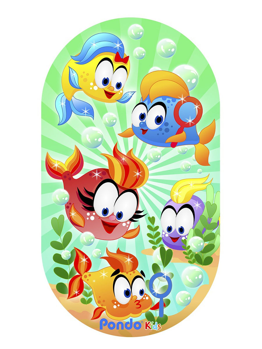 Коврик Pondo Веселые рыбки для ванны на присосках детский 69x39 см