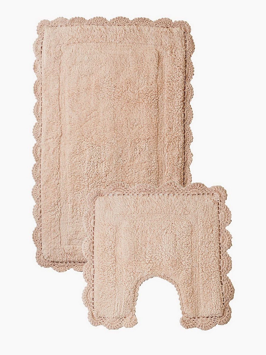 Набор махровых ковриков для ванной комнаты. Комплектация: Коврик для ванны 60х100 см. Коврик для туалета 50х50 см. Упаковка ПВХ с вешалкой. Уход - стирка при 30 гр.