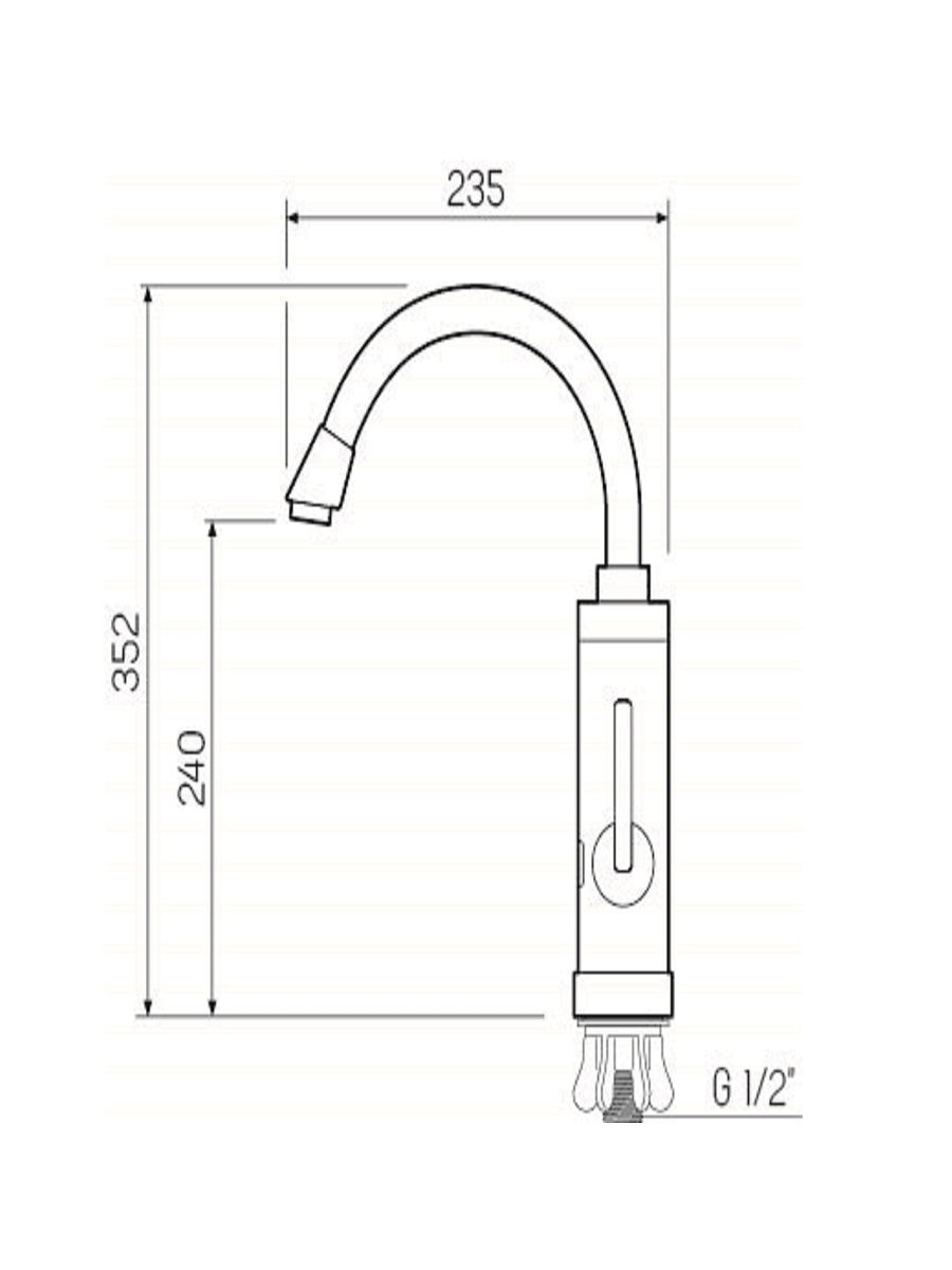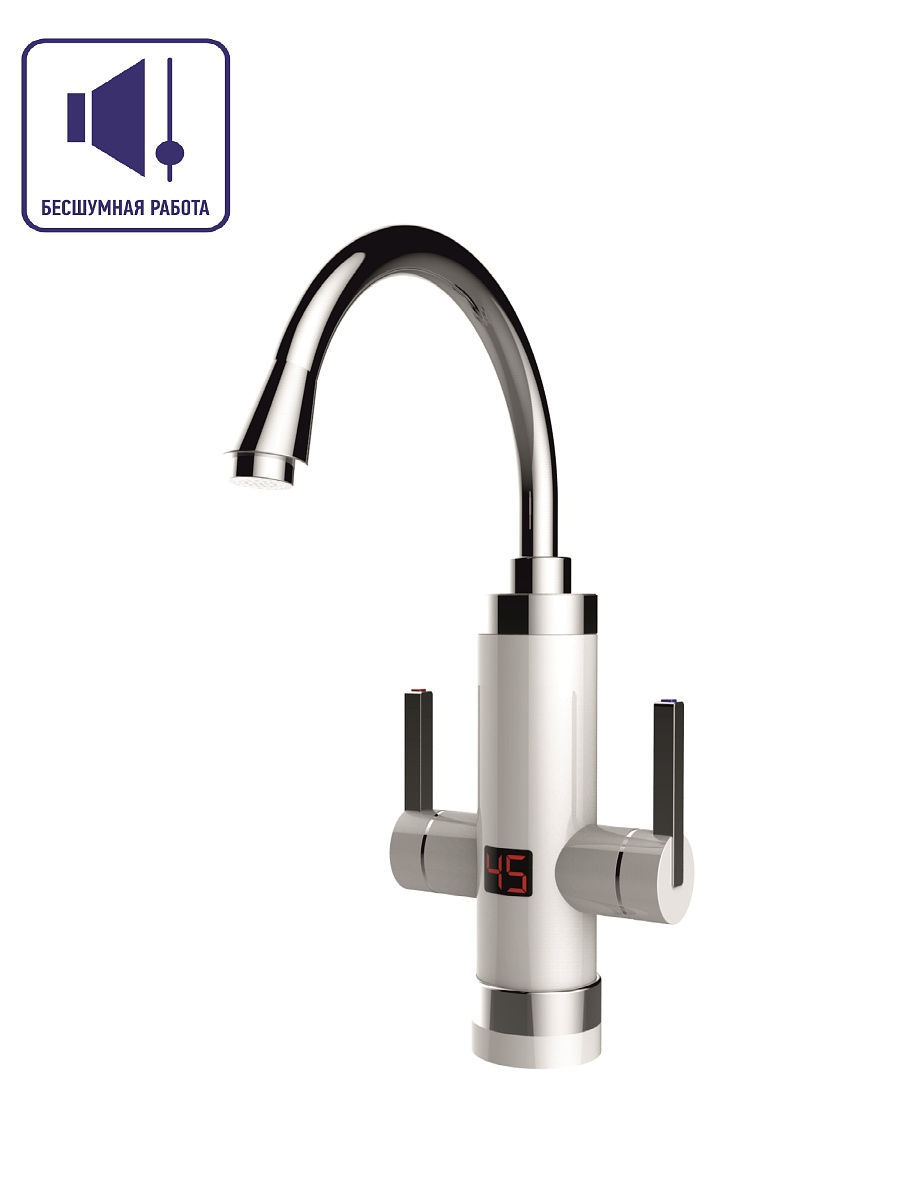 Кран водонагреватель проточного типа. Температура воды до 60 градусов. Водонагреватель подключается к магистрали холодного водоснабжения с давлением от 0,04 до 0,6 МПа и бытовой электрической сети 220В, 50 Гц. Технические характеристики: Напряжение в эл.сети - 220 В Частота - 50 Гц Номинальная мощность - 3 кВт Ток - 13 А Сечение кабеля - 1,5 мм кв Диапазон давления воды - 0,025-0,6 МПа (6 атм) Уровень водонепроницаемости - IPX4 Диаметр присоединительной резьбы 1/2\"