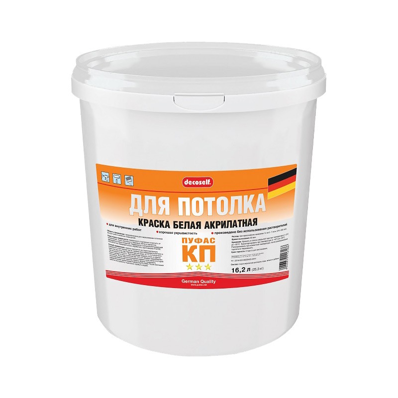 Краска PUFAS Decoself для потолка, в/д, акрилатная, белая 16,2 л