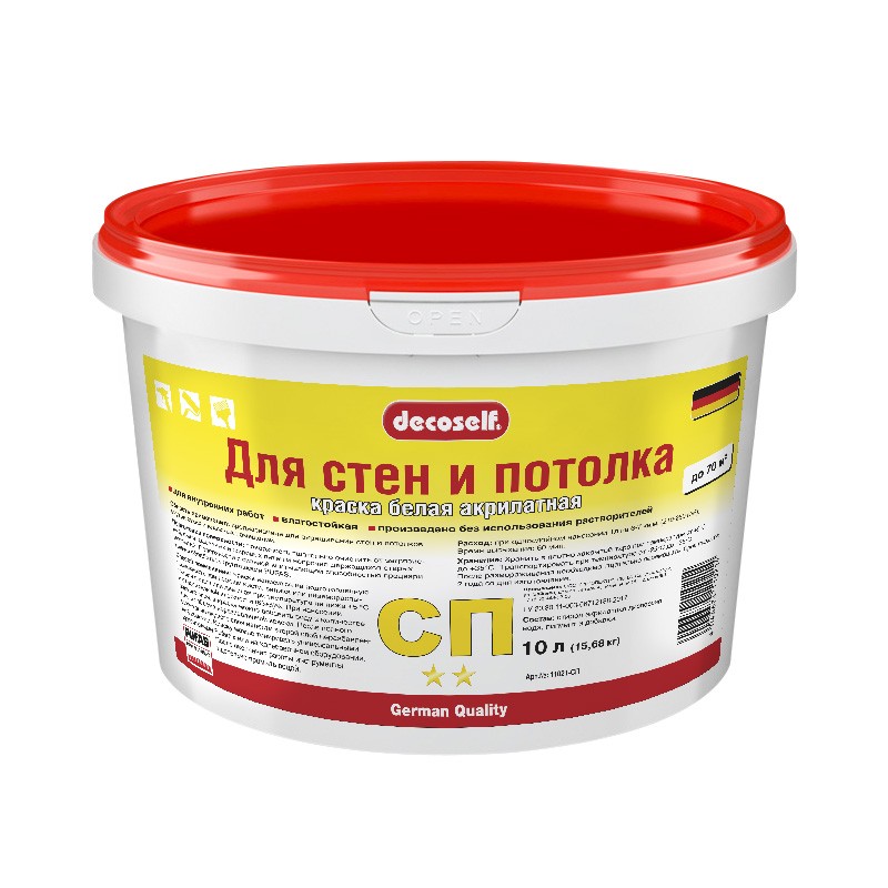 Краска PUFAS Decoself для стен и потолков, в/д, акрилатная 10 л