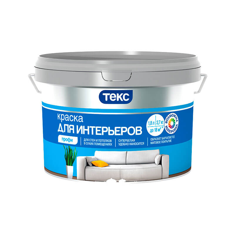 Краска ТЕКС Профи в/д, интерьерная, супербелая 1,8 л
